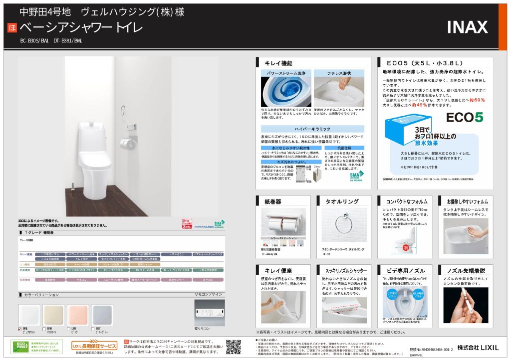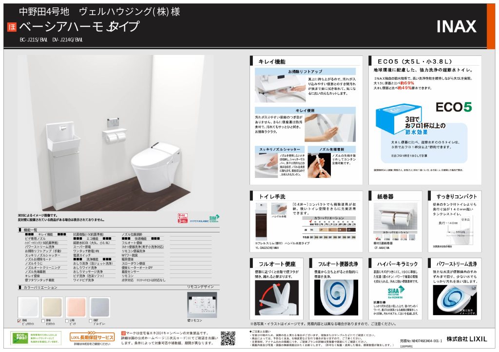 - キッチン、バス、洗面は人気のタカラスタンダード製。2つのトイレはイナックス製です