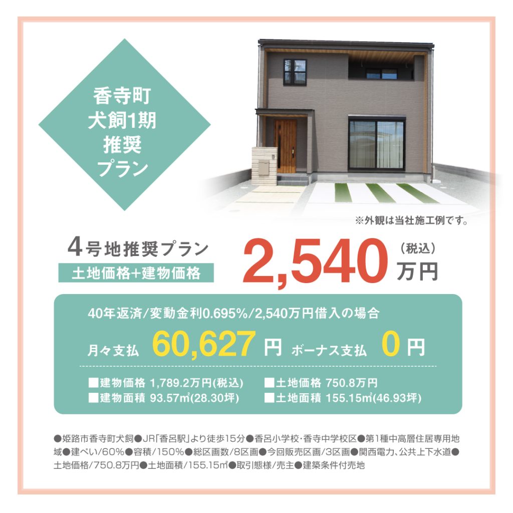 | 所在地 | 姫路市香寺町犬飼 | 区画面積 | 152.78㎡~155.15㎡ |