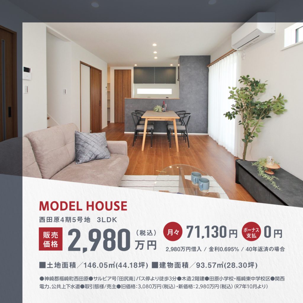 福崎北ランプ近く、車での移動が便利な西田原に新たなモデルハウス「西田原4期5号地」 が登場!