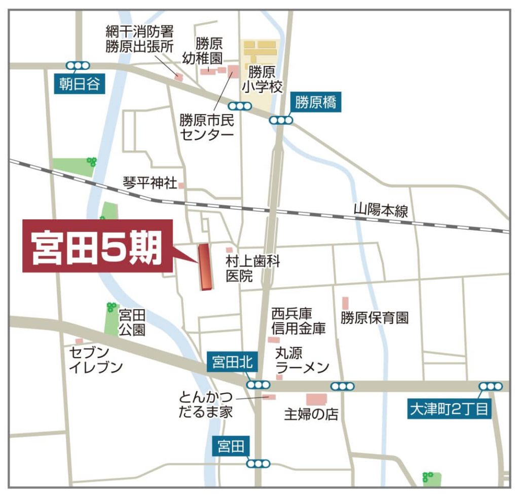 • 最寄りの交通機関は神姫バス「勝原」バス停(徒歩約4分)徒ですが、JR「網干」駅(徒歩20分、自転車6分、車4分)も生活圏内です