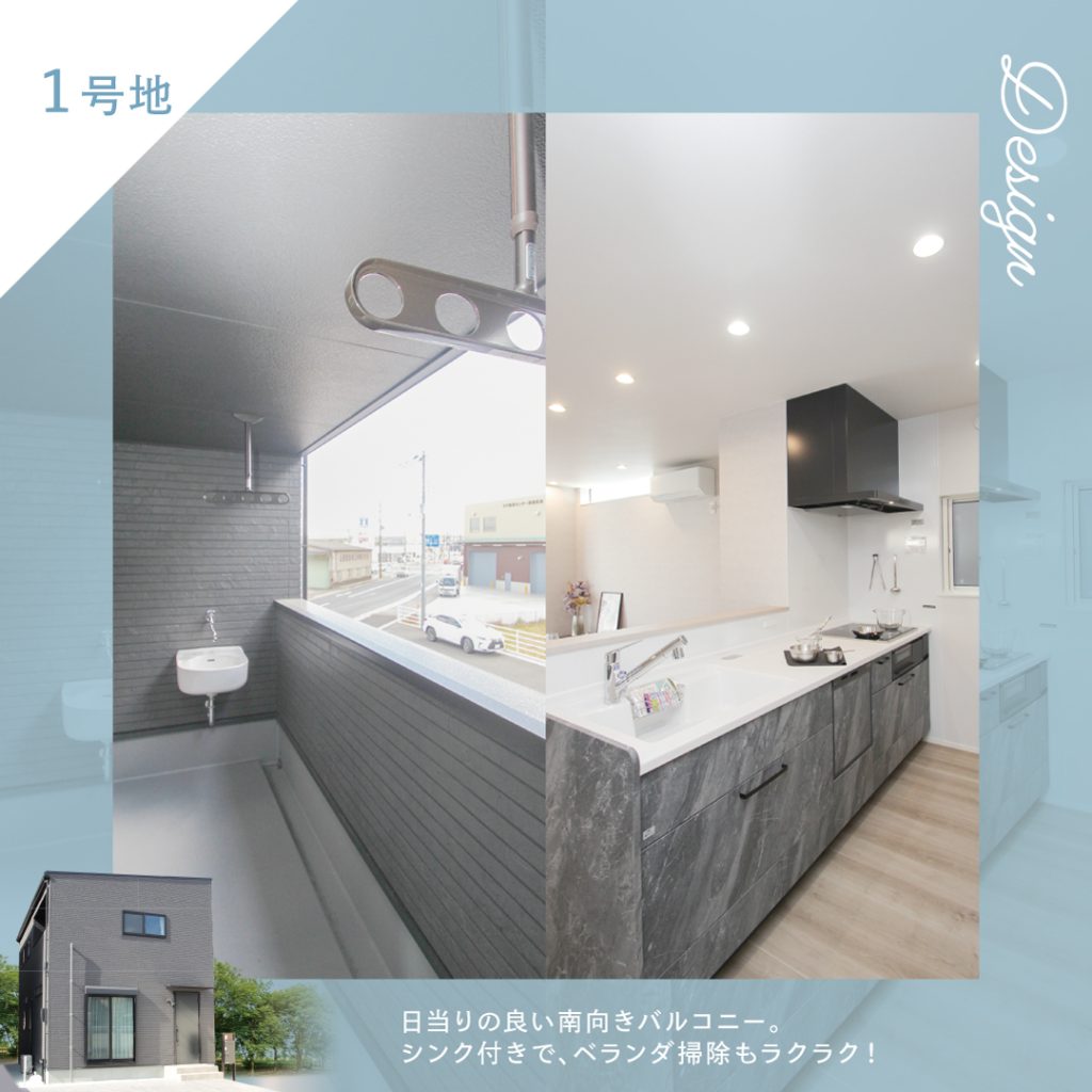 • 日当たりの良い南向きバルコニーは雨風が吹き込みにくいインナーバルコニータイプ。シンクが付いているので、お掃除がラクラクです。