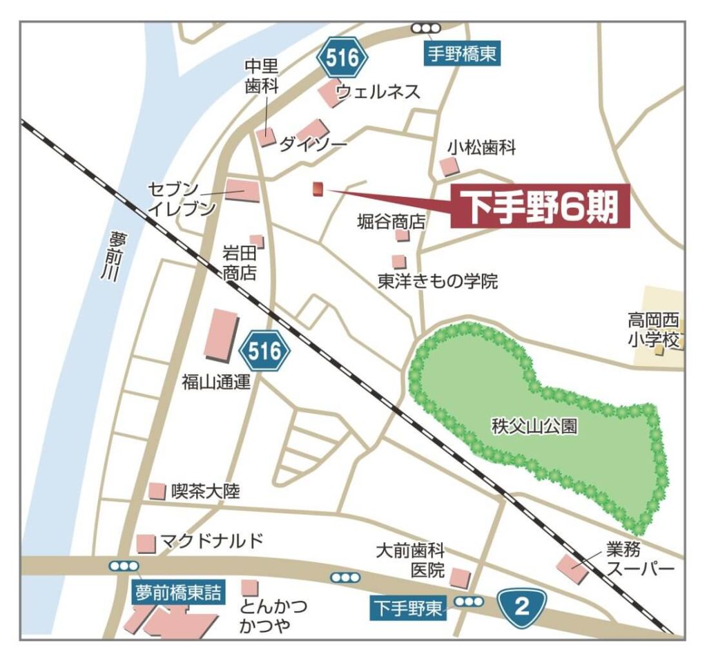 またセブンイレブン徒歩4分、ダイソー、スギドラックが徒歩6分で徒歩圏内に買物施設がそろっています - 周囲に公園がいっぱい。自然豊かで遊具やグラウンドが整った秩父山公園も徒歩9分です