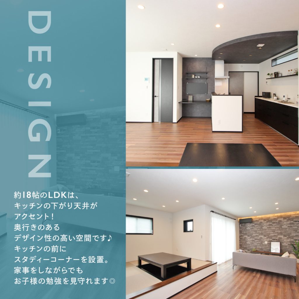 さらに間接照明やアクセントウォール、降り下げ天井、造作などで演出したシックモダンだ入空間も見逃せません。