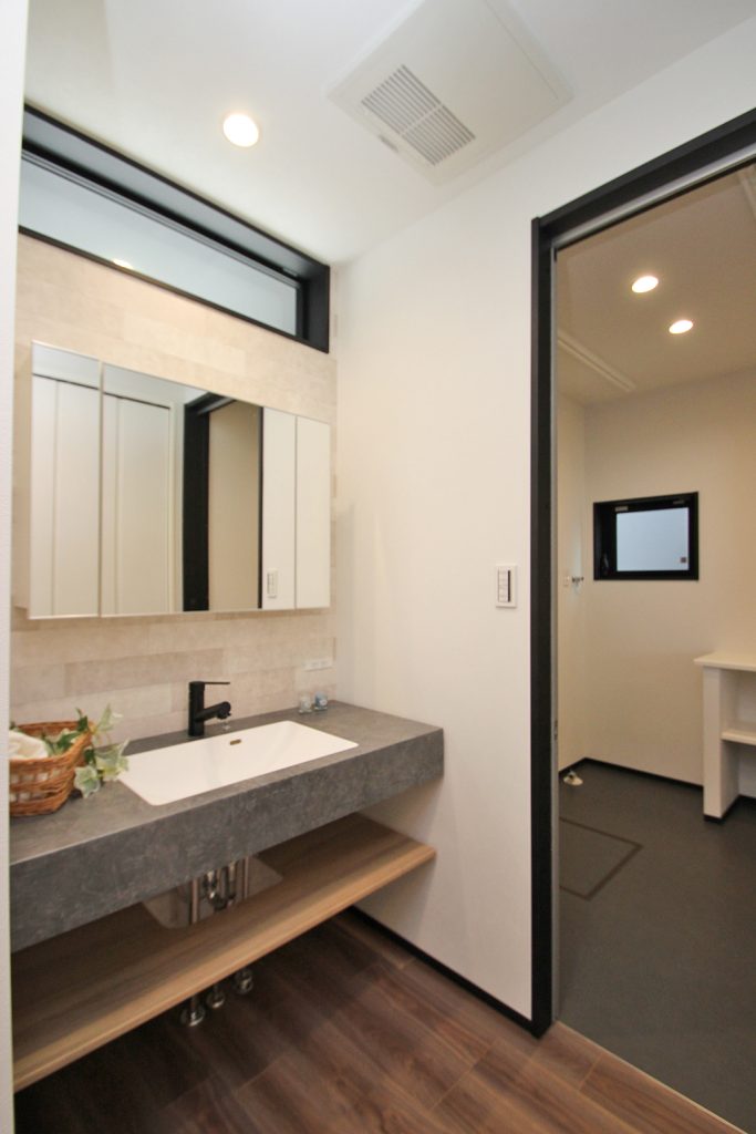 - 洗面所にはスタイリッシュな造作洗面台を配置。脱衣所と分け、生活感を無くしました