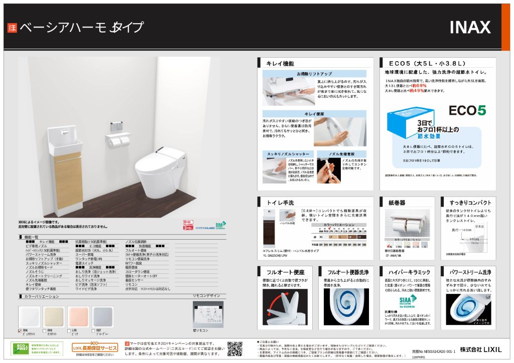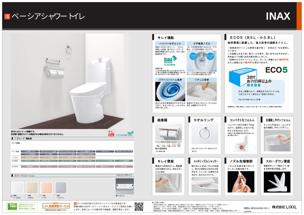 • 2つのトイレはいずれもイナックス製。1階はタンクレスです