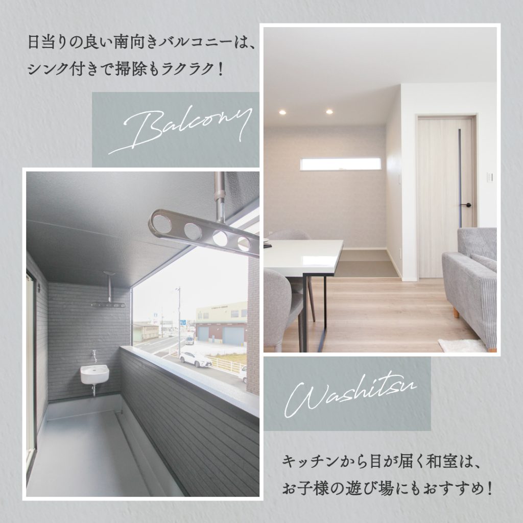 • キッチンから目が届く3帖の和室は、お子さまの足び場や来客スペースにピッタリ。
