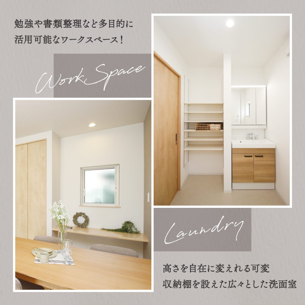 • キッチン横にスタディスペースや家事コーナーとしても使えるワークスペースを配置。