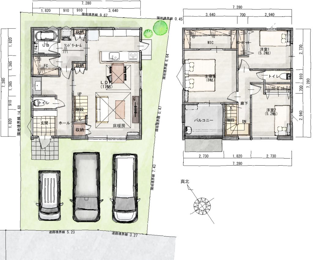 モデルハウスは、制振装置・床暖房・ランドリールーム・ファミクロなどハイクオリティなスペックをフル搭載しています。