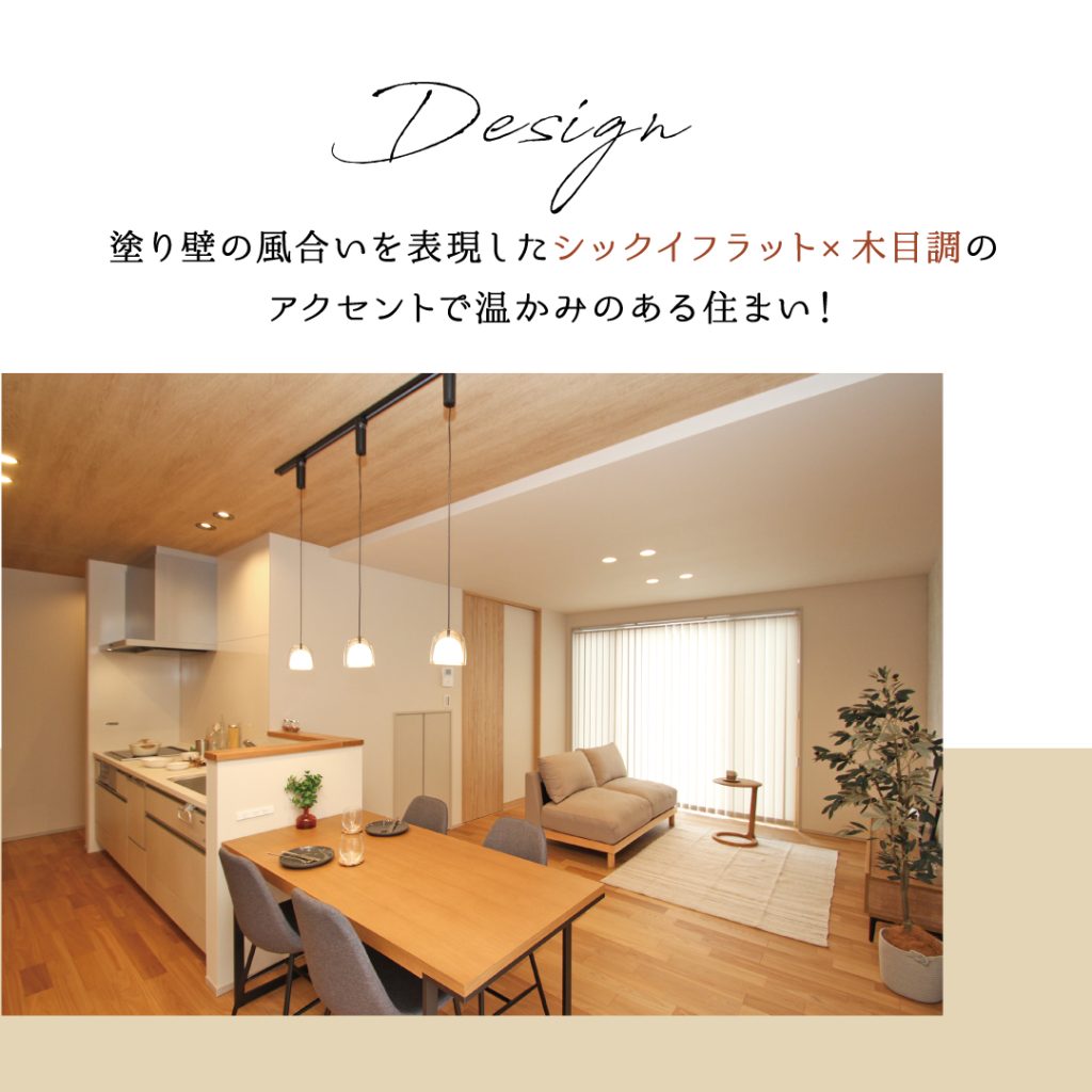 外観や内装にもこだわり、外壁は塗り壁風の風合いを再現した「シックイフラット」を採用しました。