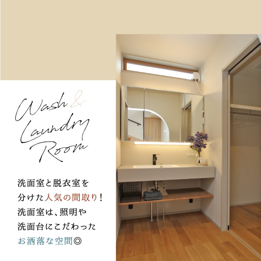 - 洗面と脱衣所を分けた人気の間取り。SICのある玄関と、ファミクロのある水回りが直通で、お出かけ動線、お帰り動線もスムーズです