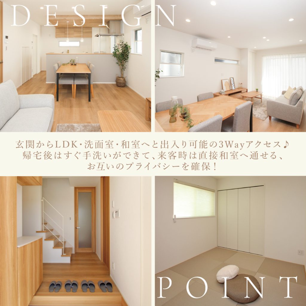 - 玄関からLDK・洗面室・和室へと3Wayアクセスで出入り可能。