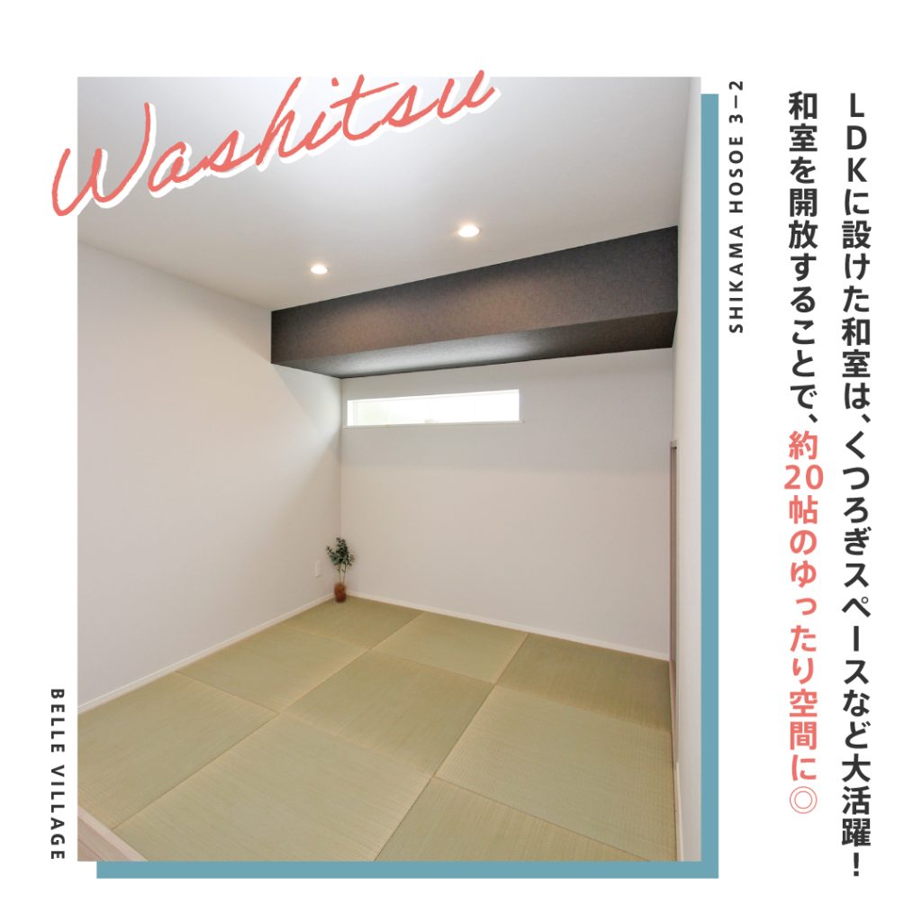 - 和室と合わせると20帖の広々LDK。来客時の客間やお子さまの遊び場に。