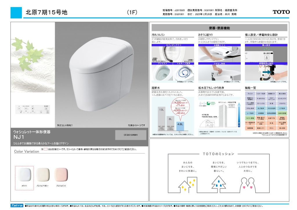 - キッチンは『オフェリア』、浴室は『リラクシア』。どちらも人気のタカラスタンダードです。トイレは1、2階ともTOTOの節水タイプ。1階トイレはタンクレスです。