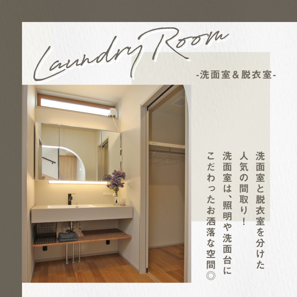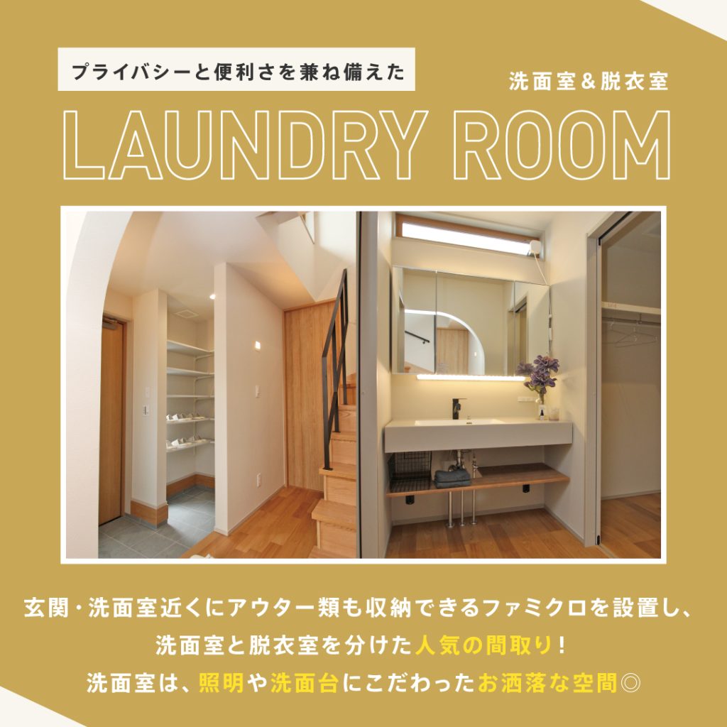 - 室内干し対応&収納付きで洗濯動線もスムーズ。