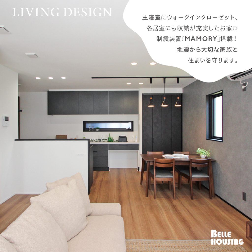 制振ダンパーやランドリールーム、ファミクロなども付いた、これからの時代の住まいです。