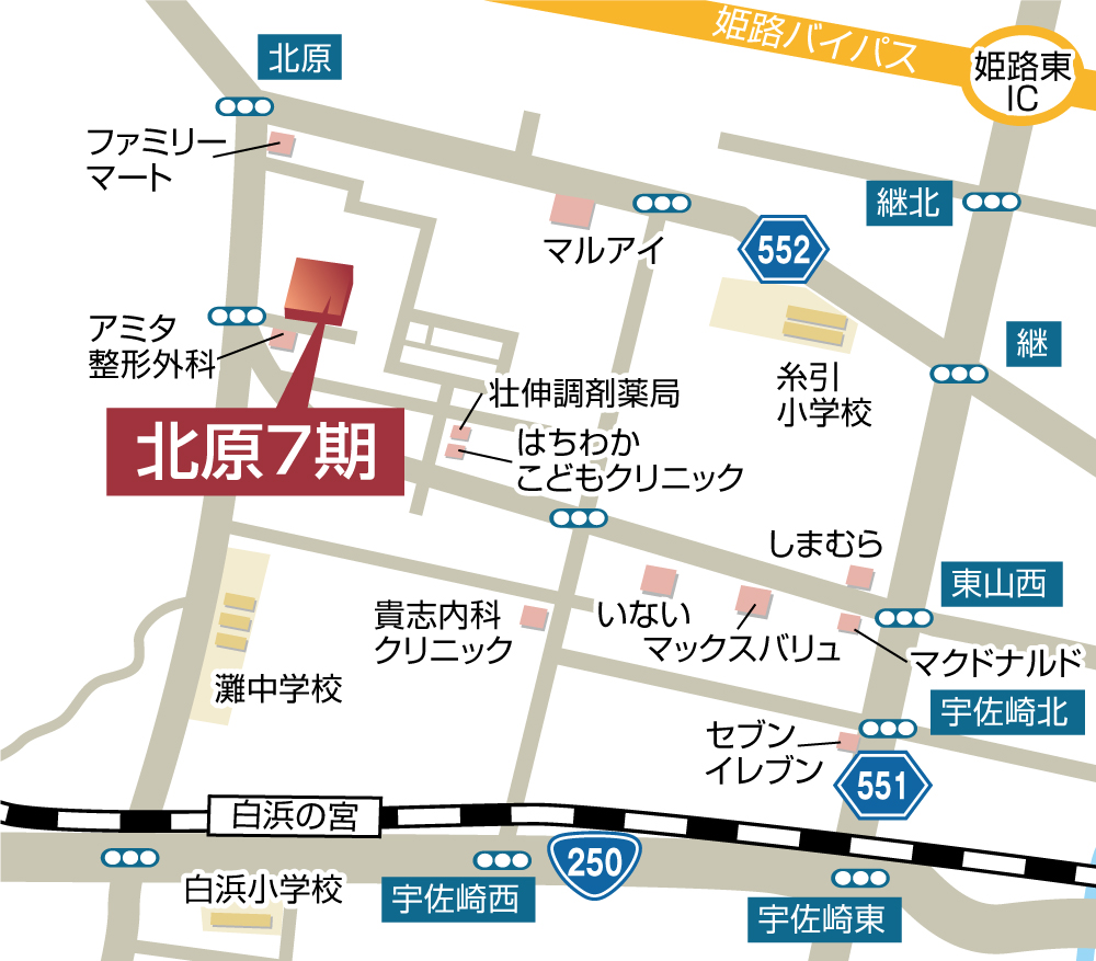 ●はちわかこどもクリニックまで徒歩3分、アミタ整形外科まで徒歩5分