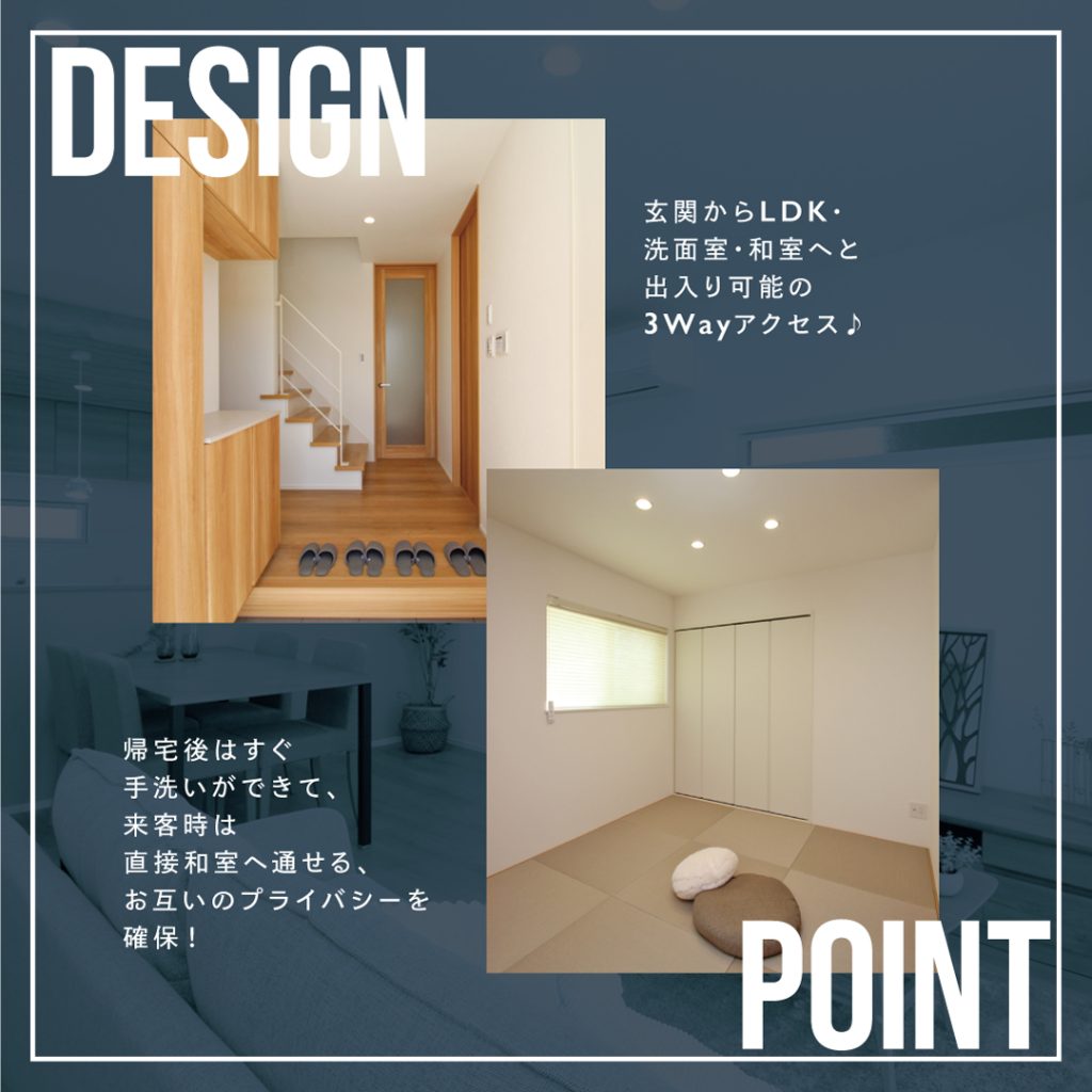 • 玄関からLDK・洗面室・和室へと3Wayアクセスで出入り可能。