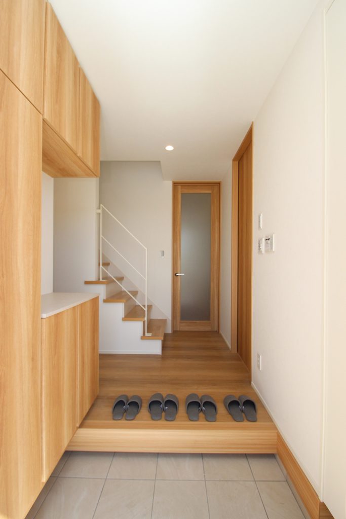 - 玄関はシューズボックスと土間収納のダブル収納で整理整頓がスムーズ。