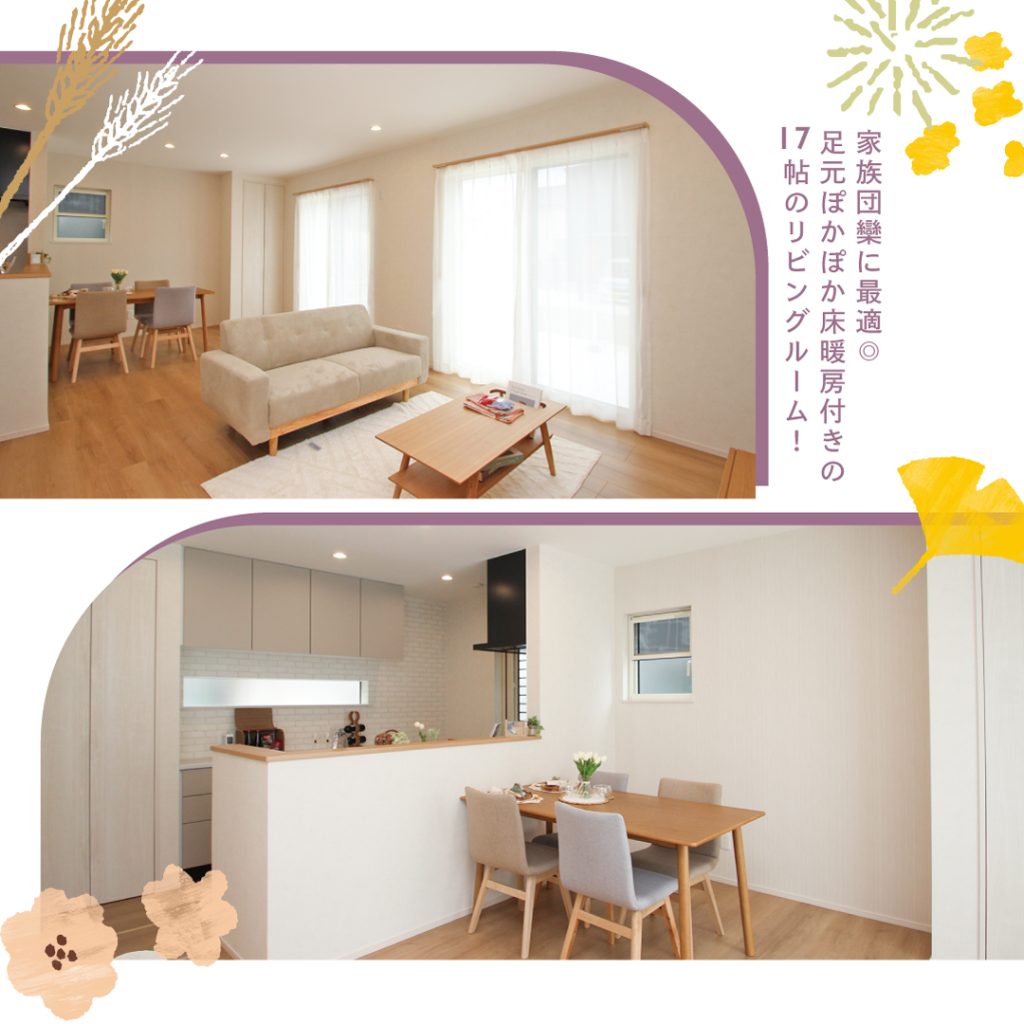 ●17帖のLDKは床暖房付き