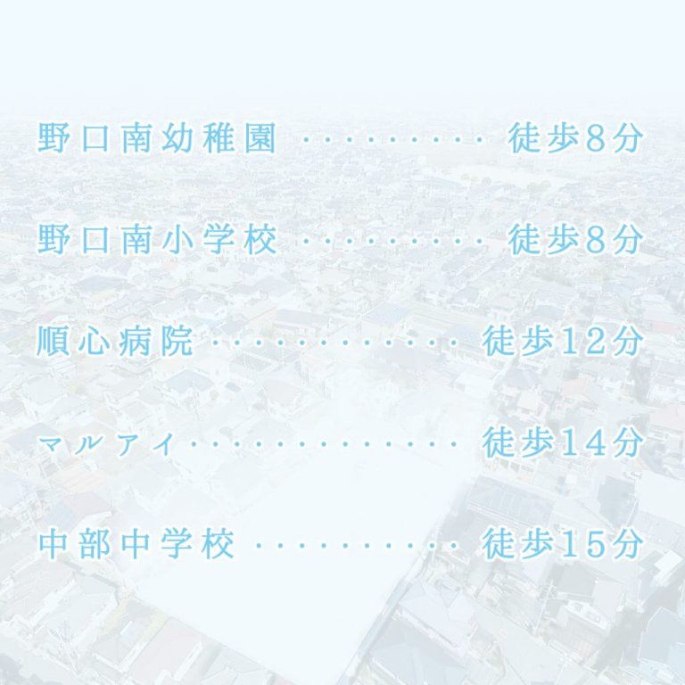 ●野口南幼稚園まで徒歩約9分、野口南小学校まで徒歩約8分、中部中学校まで徒歩約15分