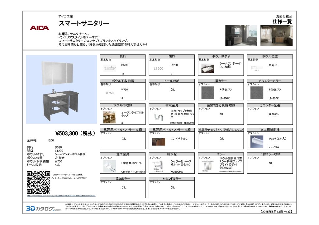 ●洗面化粧台はSNSで造作洗面台のようにオシャレと話題のAICA『スマートサニタリー』を採用。