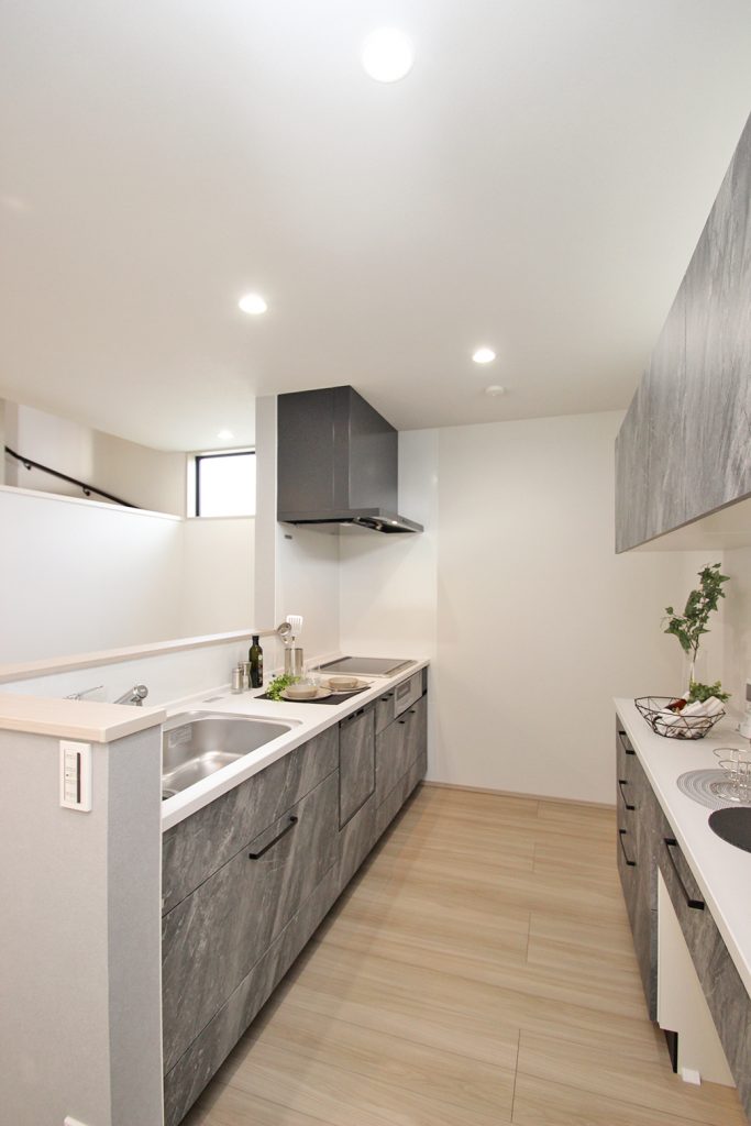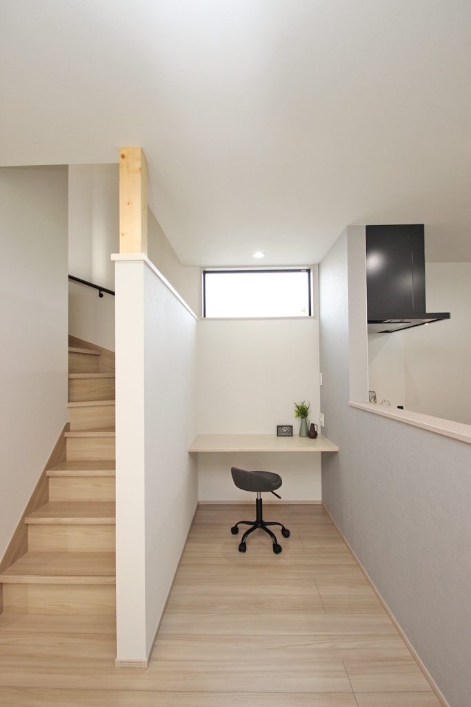 ●キッチンから目が届く場所に、適度なおこもり感があって集中できる造作カウンターを設置。