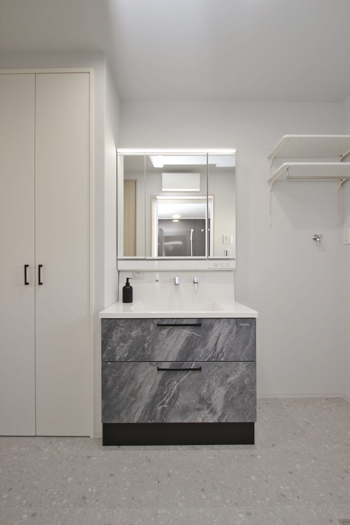 ●玄関直通の洗面脱衣所で、帰ってすぐうがいや手洗いができる「おかえり動線」を各尾