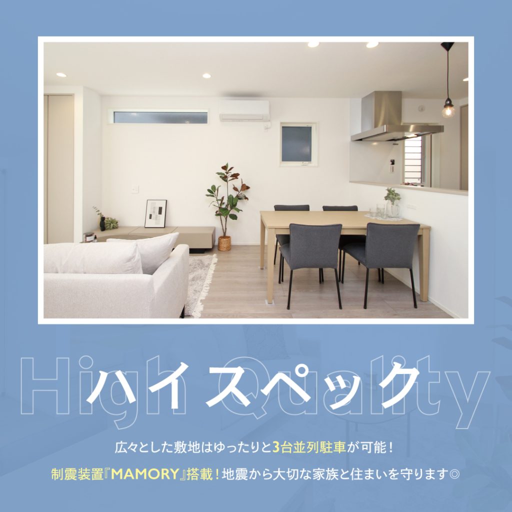 敷地には3台並列駐車が可能で、来客時にもゆとりのある駐車スペースを確保。制震装置「MAMORY」を搭載し、万一の地震にも備えた安心の住まいです。