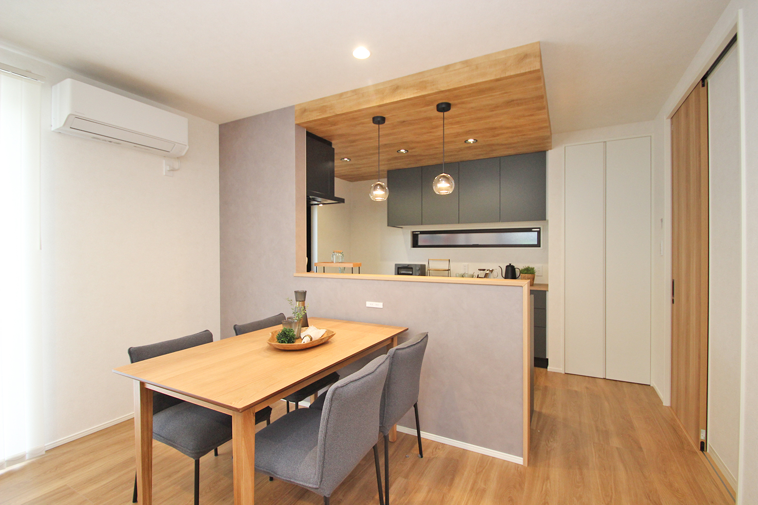 ★折下天井に木目調のアクセントクロス貼り、
