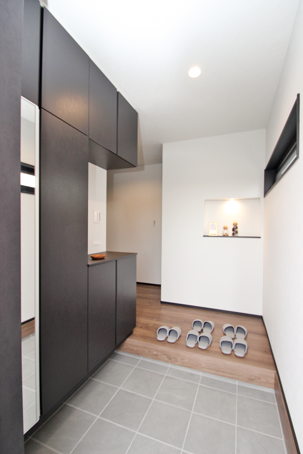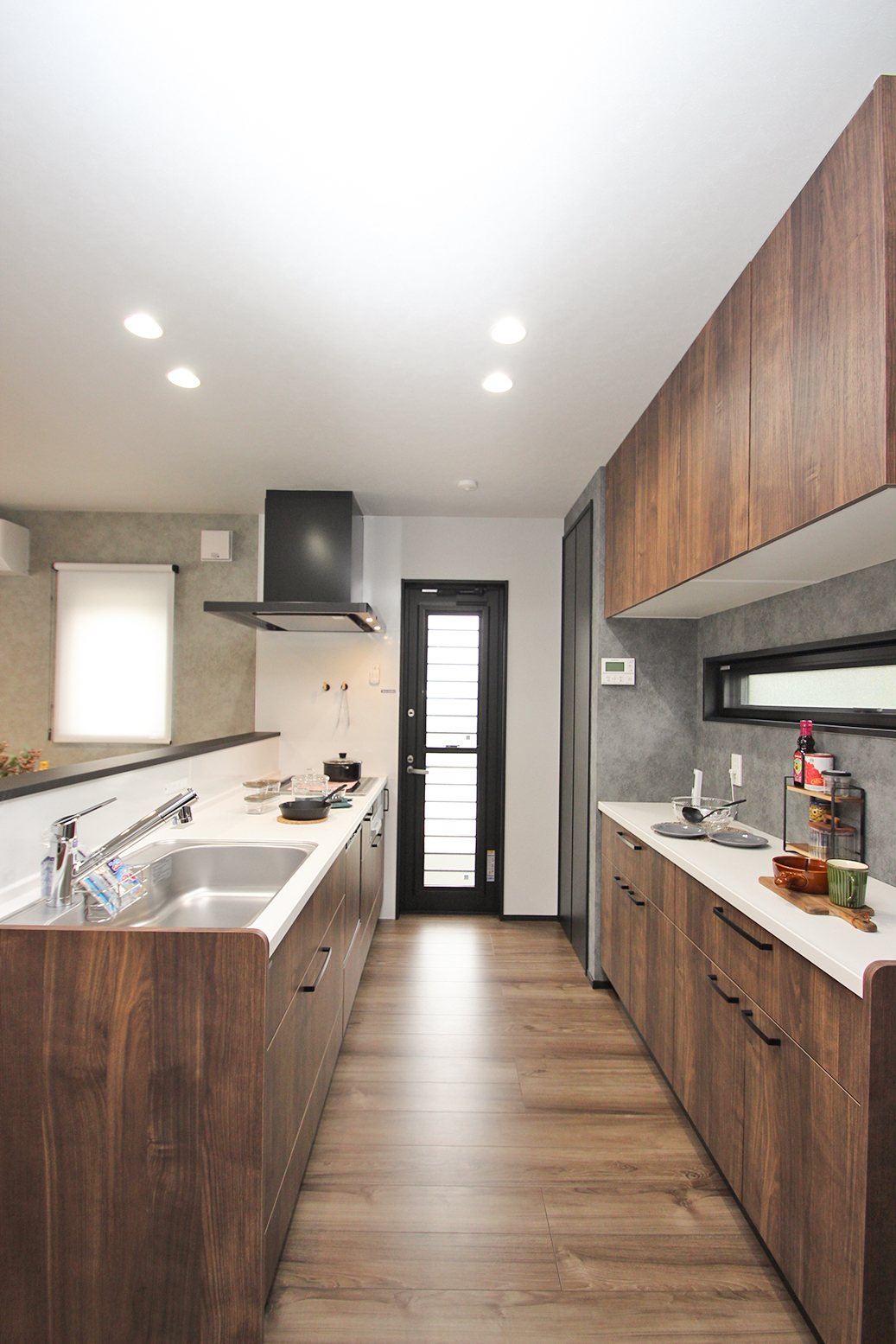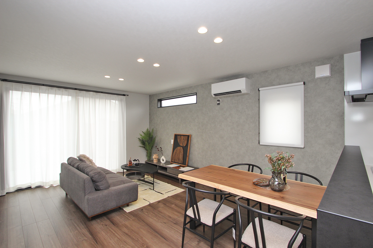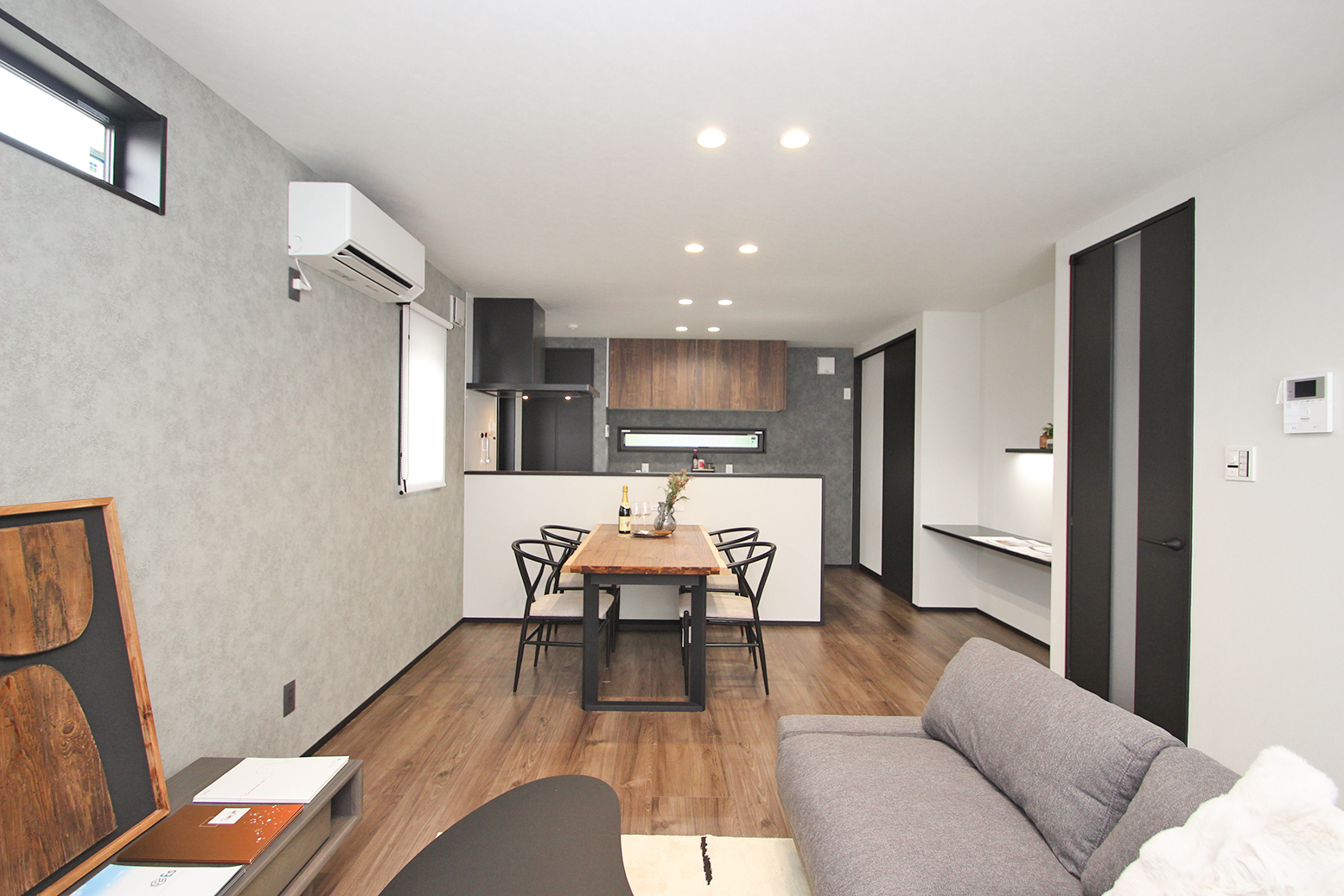 ★グレーに木目調のアクセントが映える