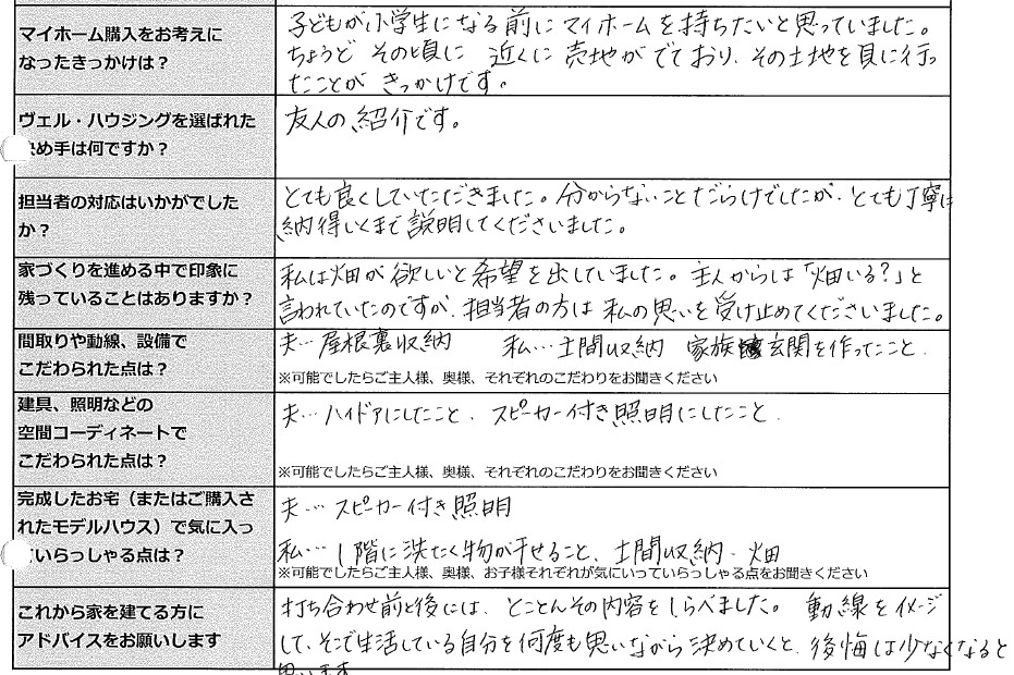 私は畑が欲しいと希望を出していました。主人からは「畑いる?」と言われていたのですが、担当者の方は私の想いを受け止めてくださいました。