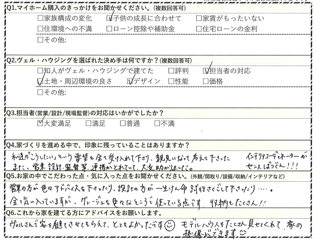 ヴェルさんで家を建てさせてもらえてとてもよかったです