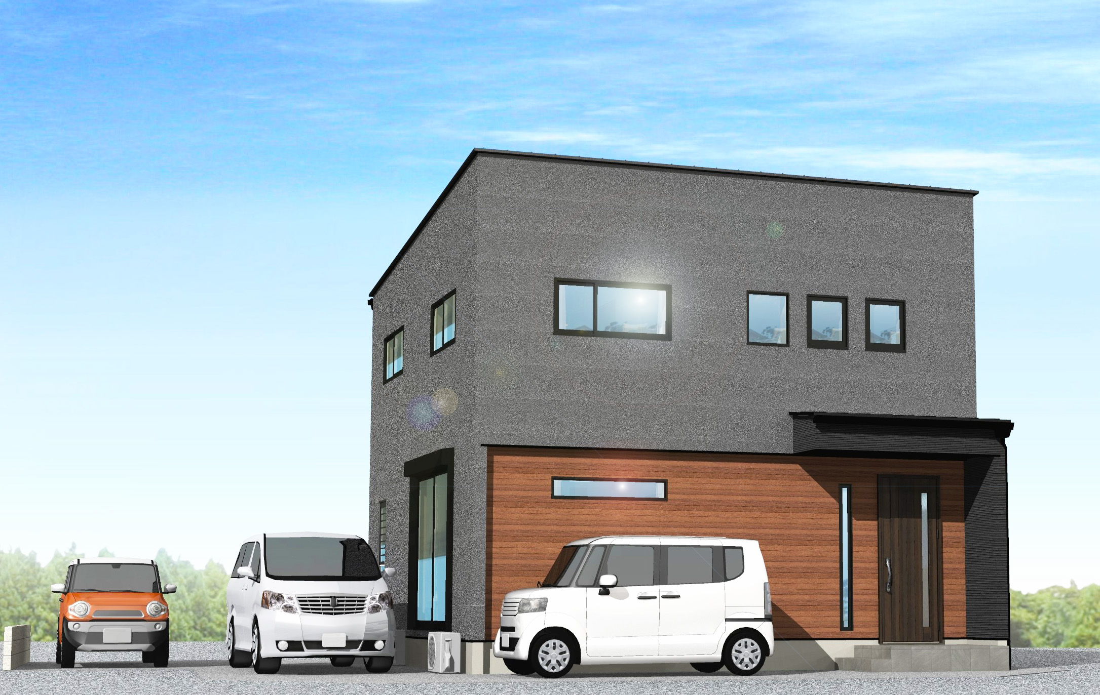 ◎3台駐車可能◎ホワイト×ブラックのシンプルモダンな外観。