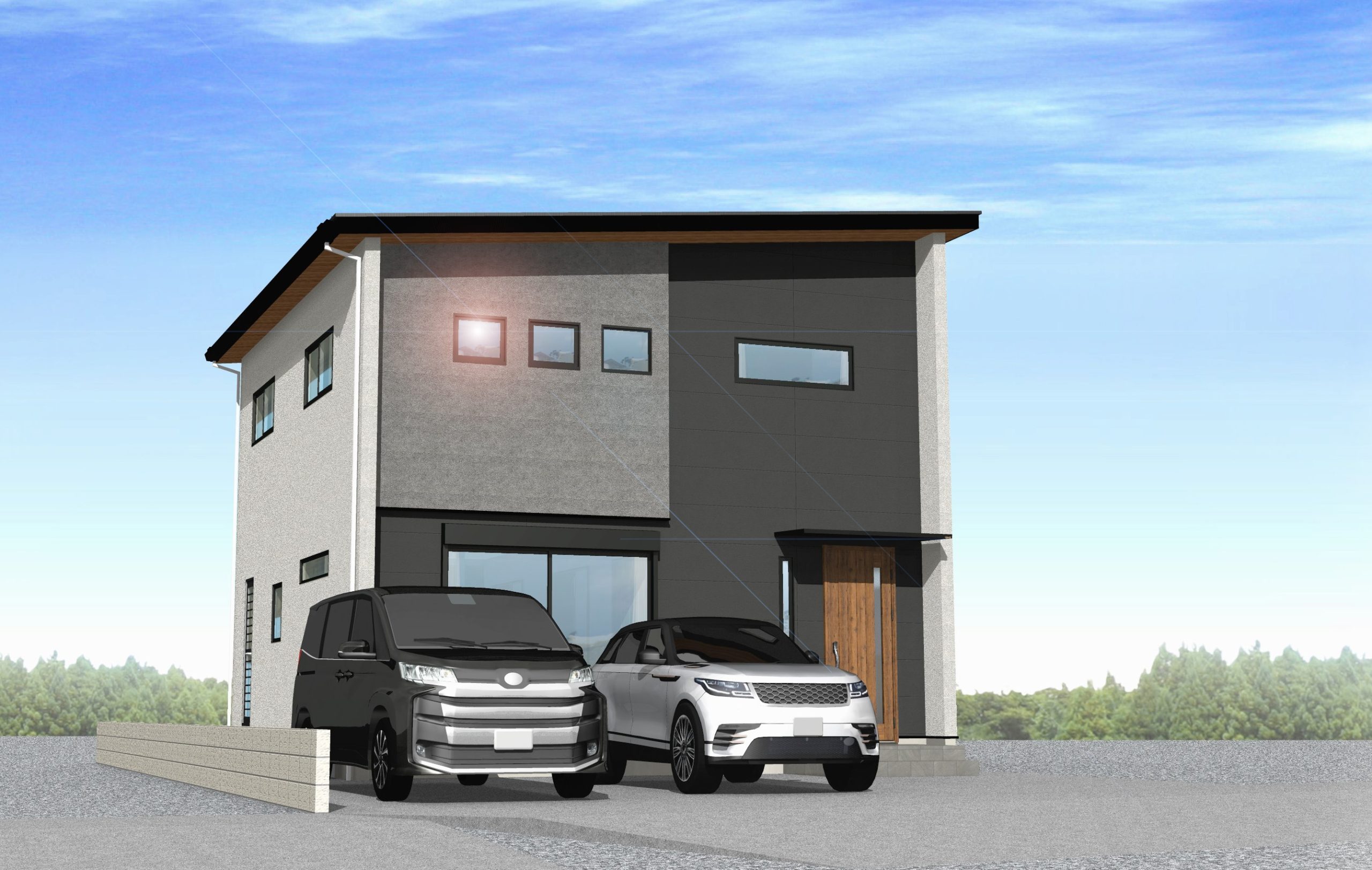 グレーでまとめたシンプルでスタイリッシュな外観。全室フローリングの4LDK!