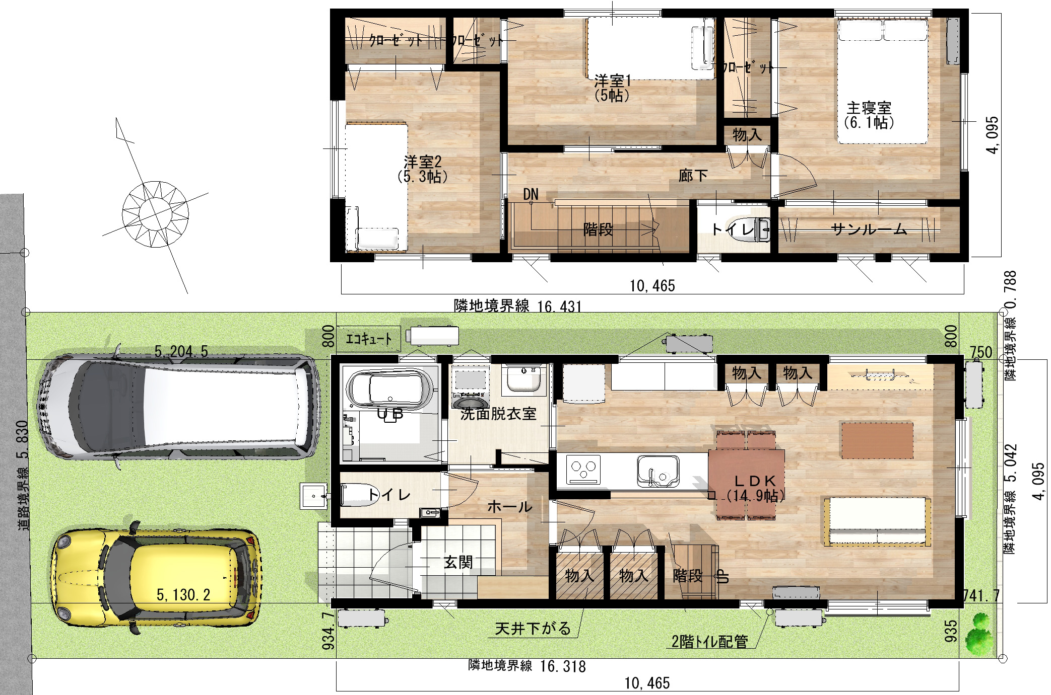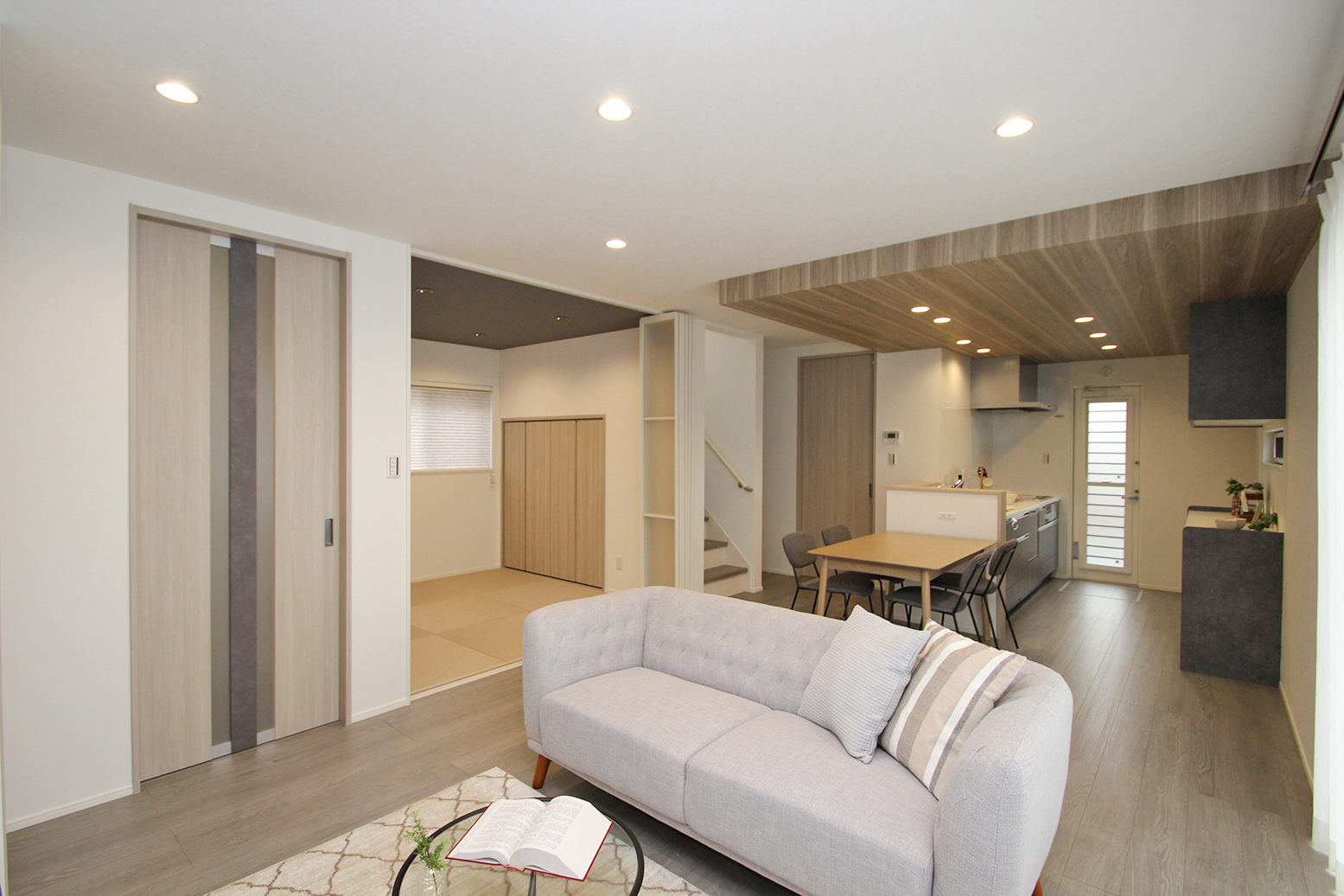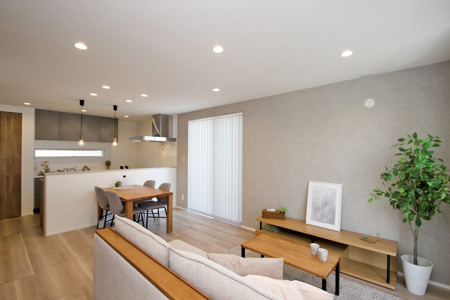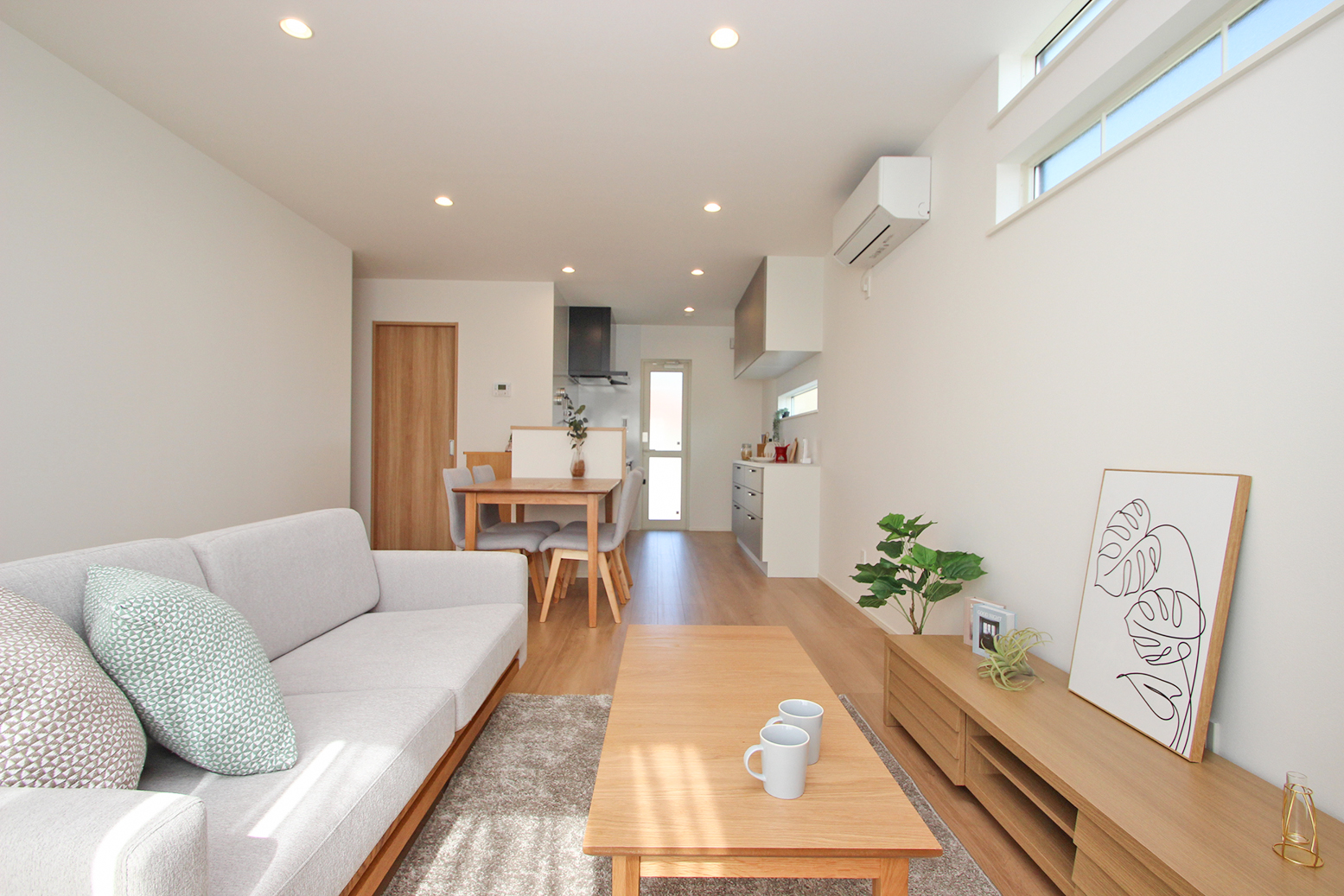 白を基調に落ち着いた木目が映えるこだわり設計の家。