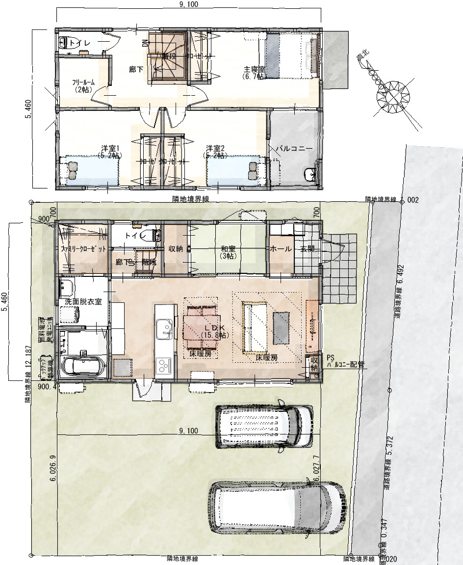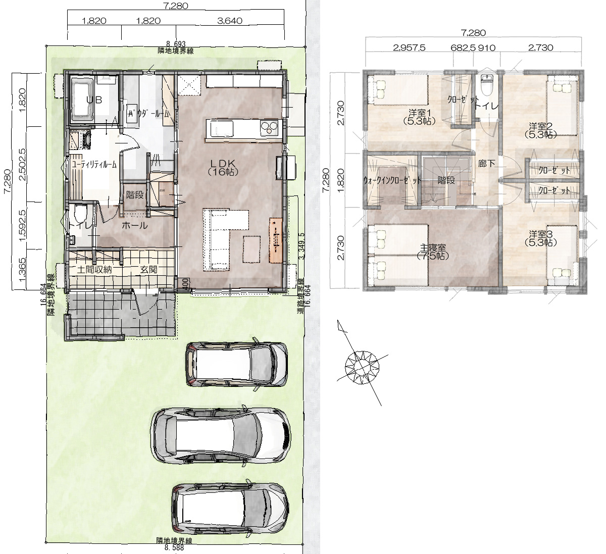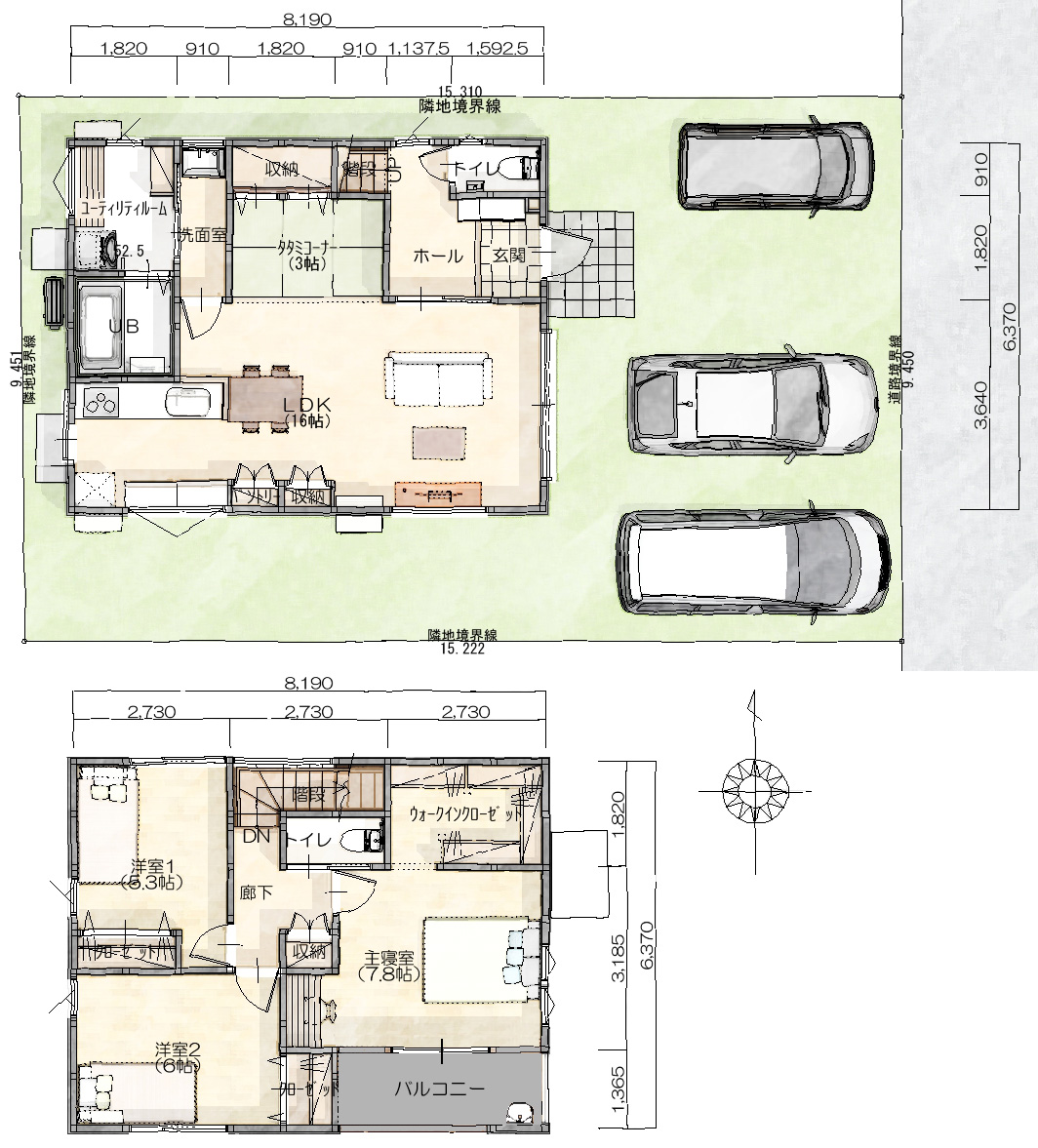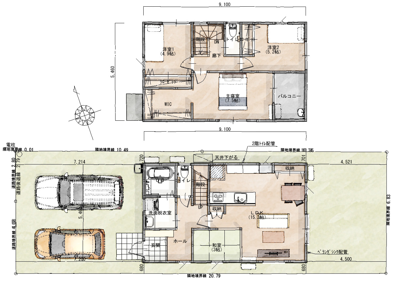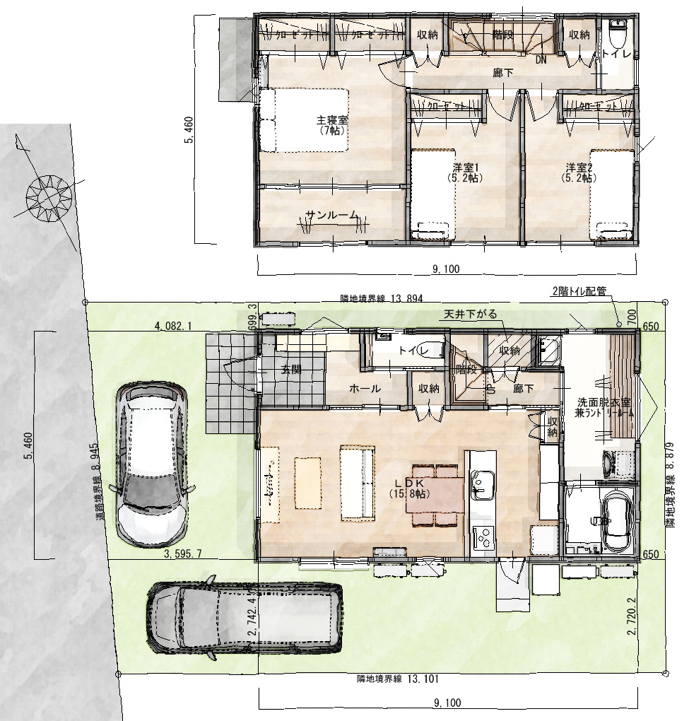 白を基調に落ち着いた木目が映えるこだわり設計の家。
