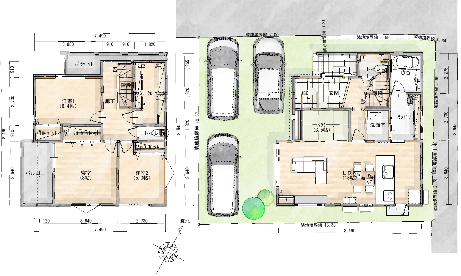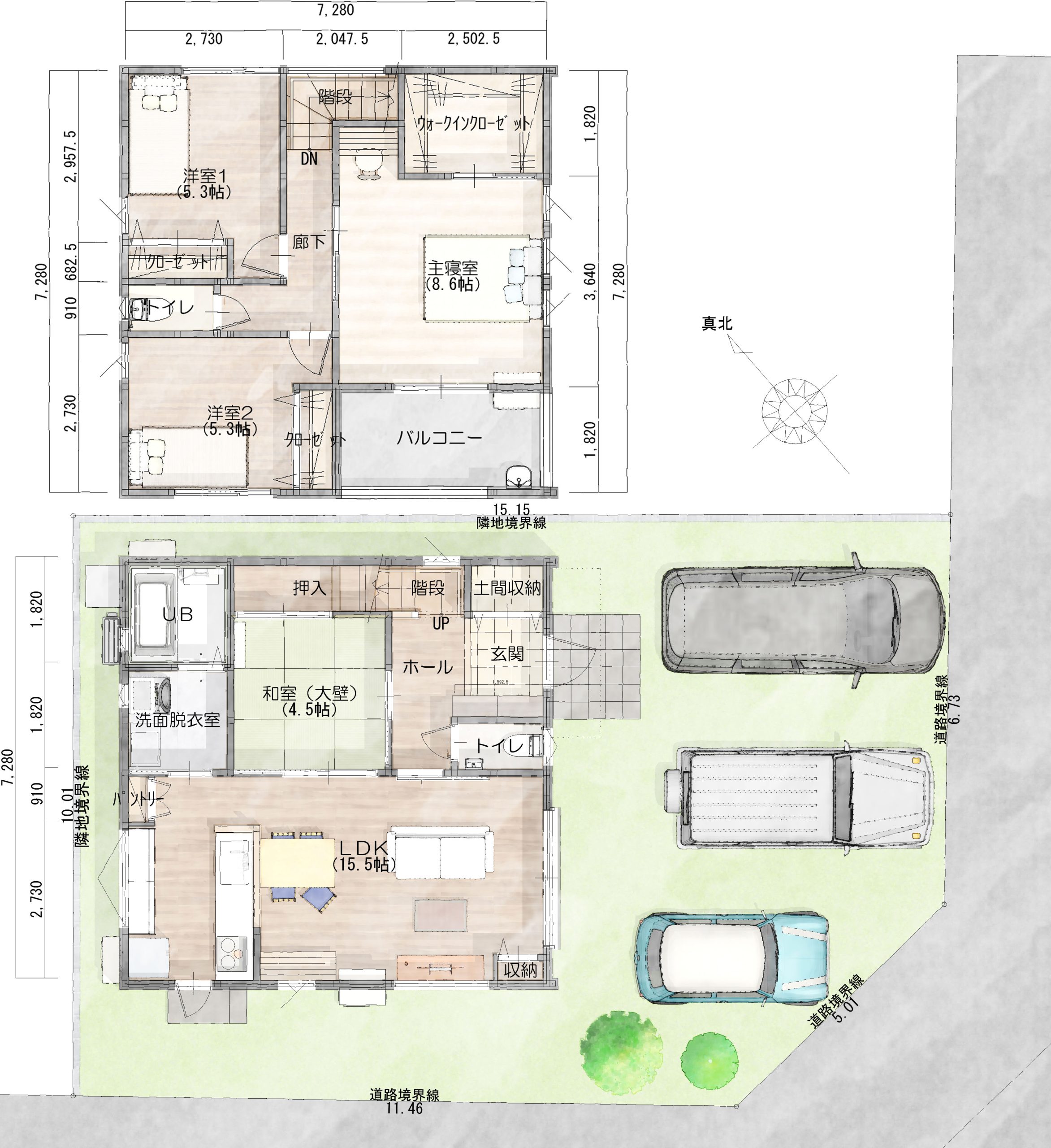 温かみのある切妻屋根と無機質なグレーが調和した住まい。