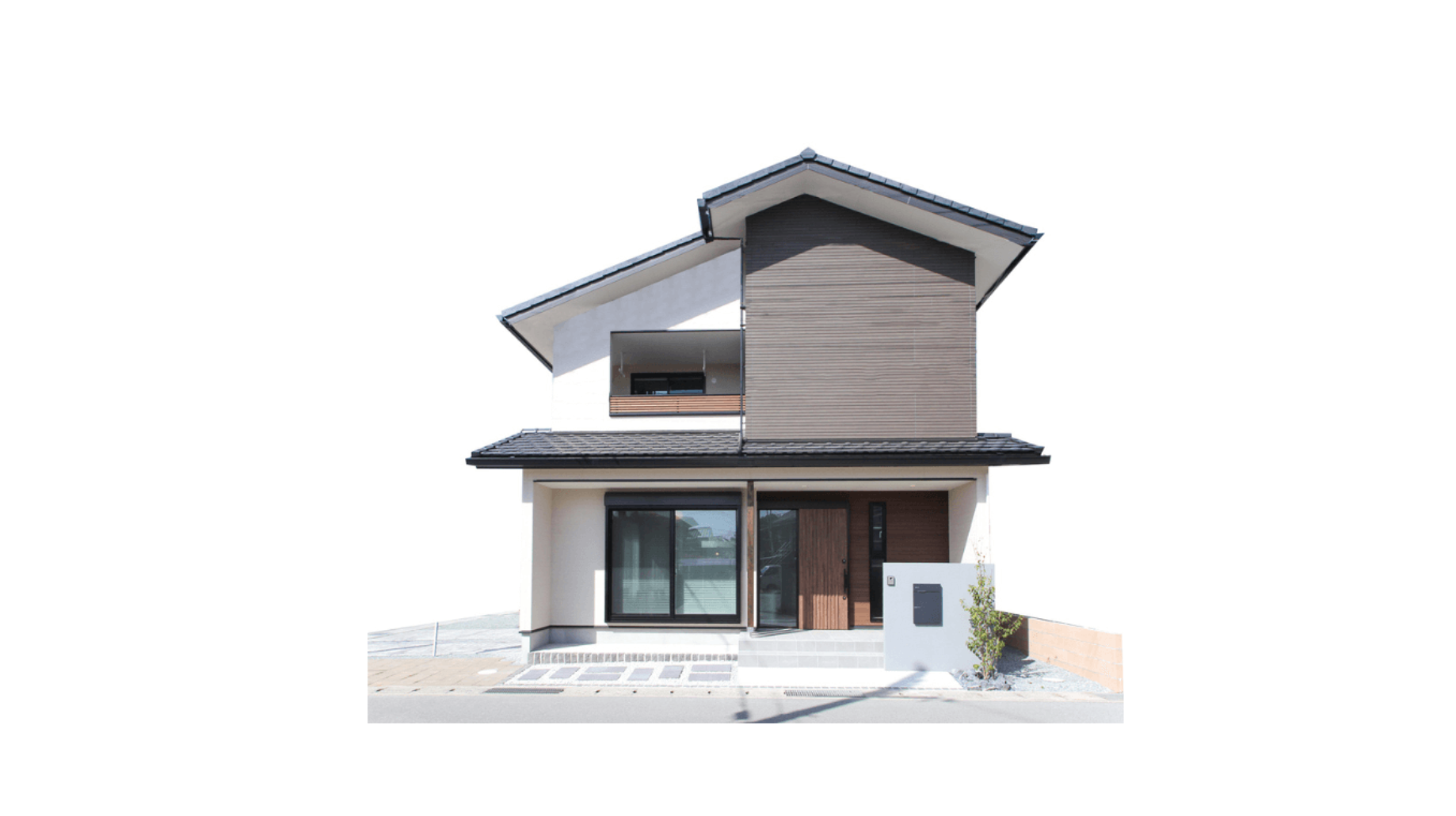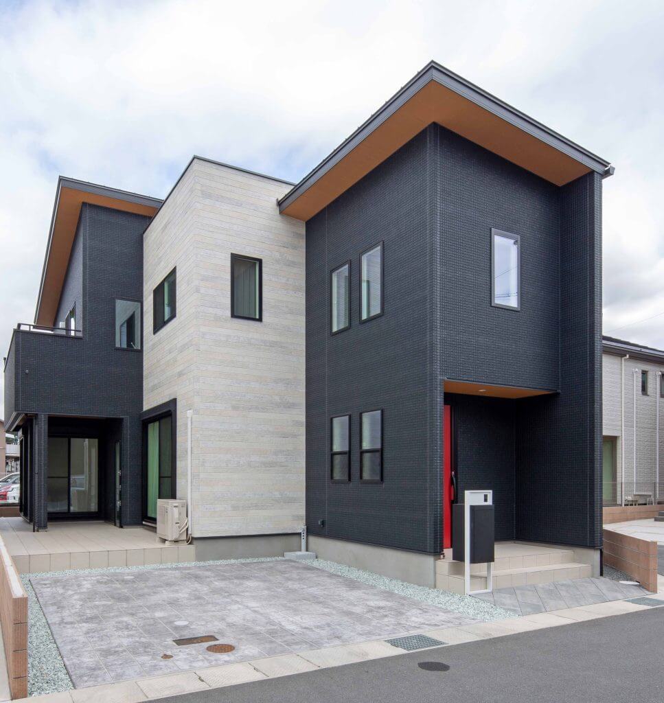 乱張りタイルが目を引く家