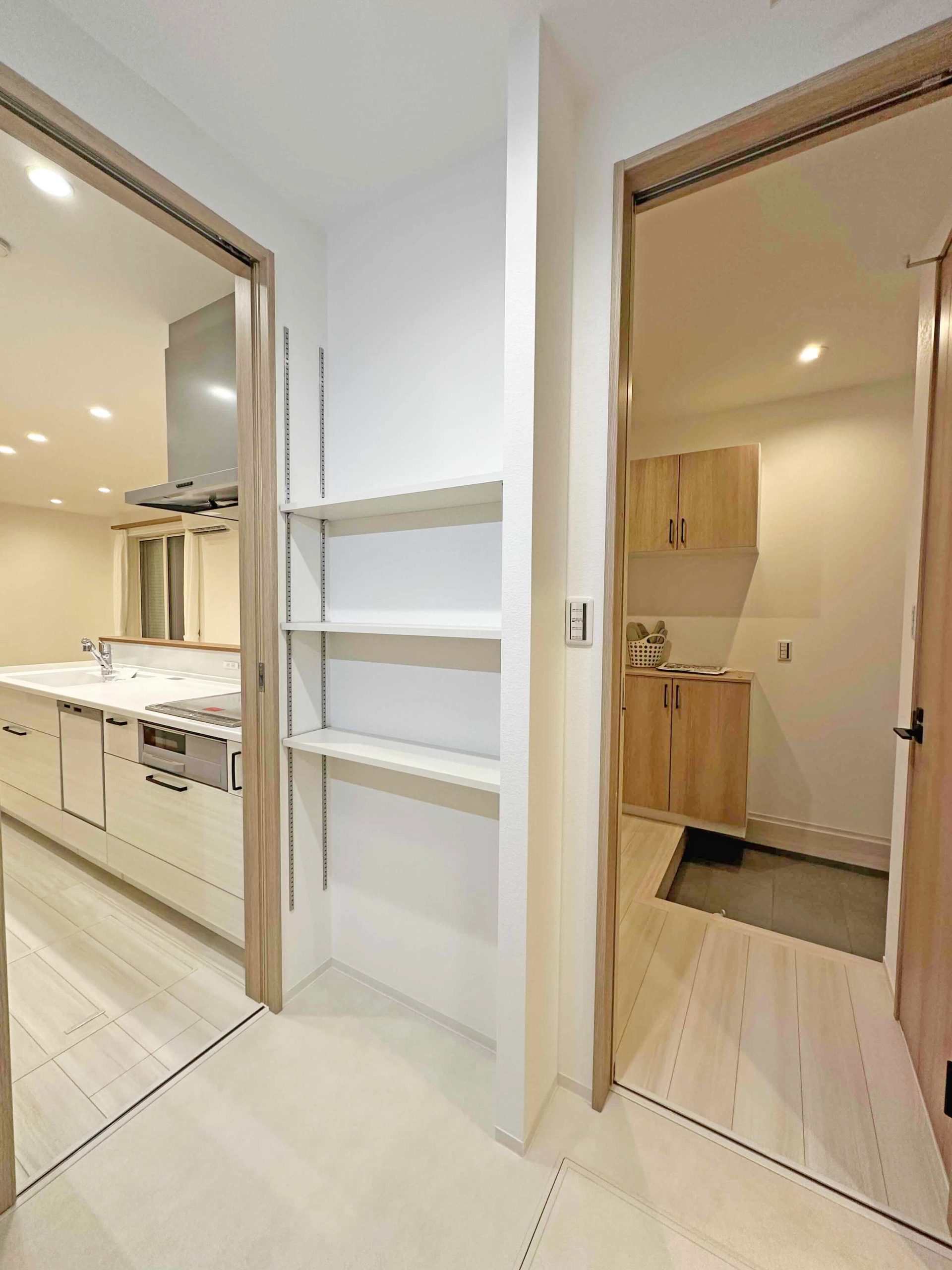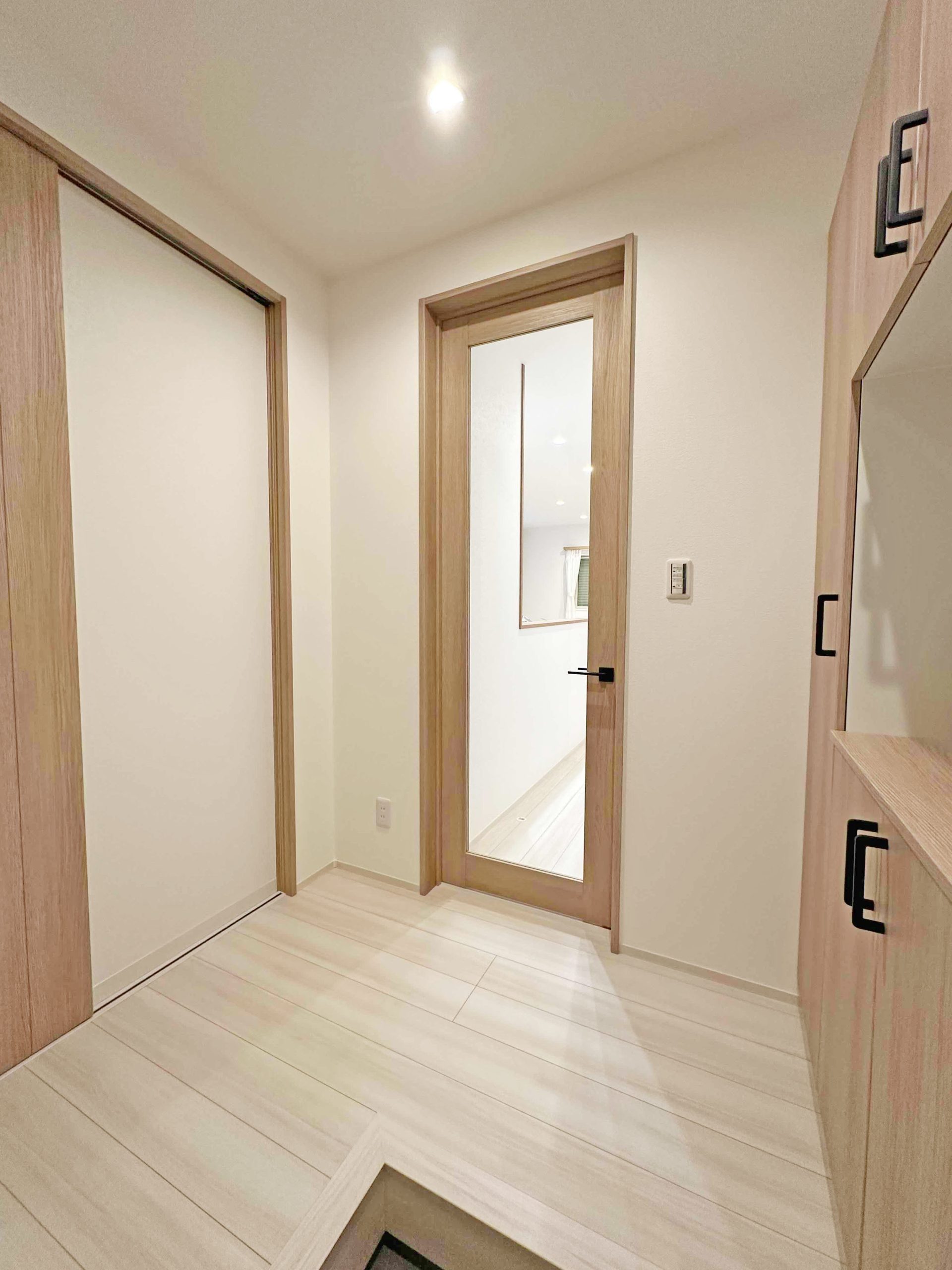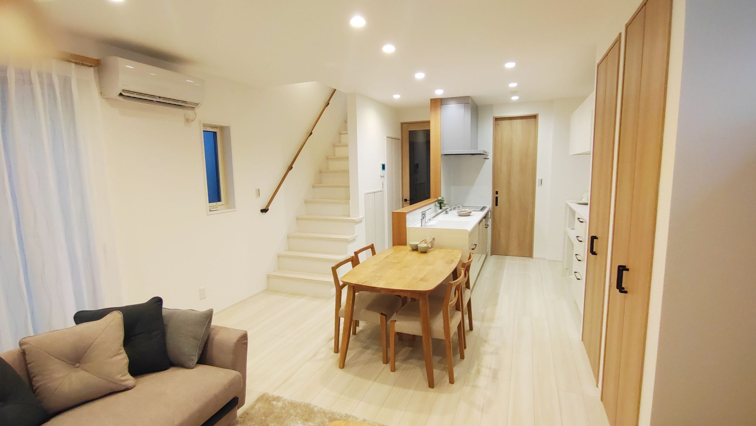 やさしい色合いのフローリングでお部屋が明るくほっと落ち着く空間に◎キッチン横並びダイニング・リビングイン階段など家族の会話が自然と増える間取り。