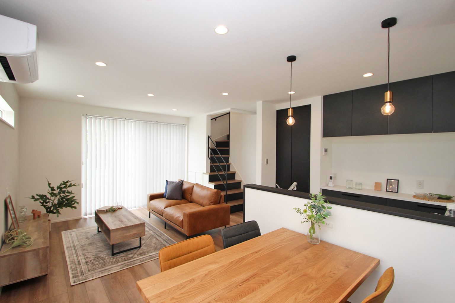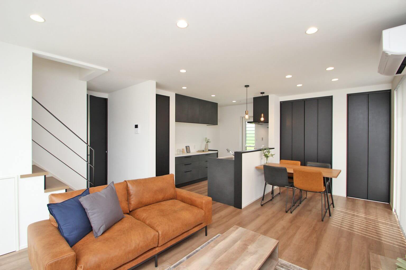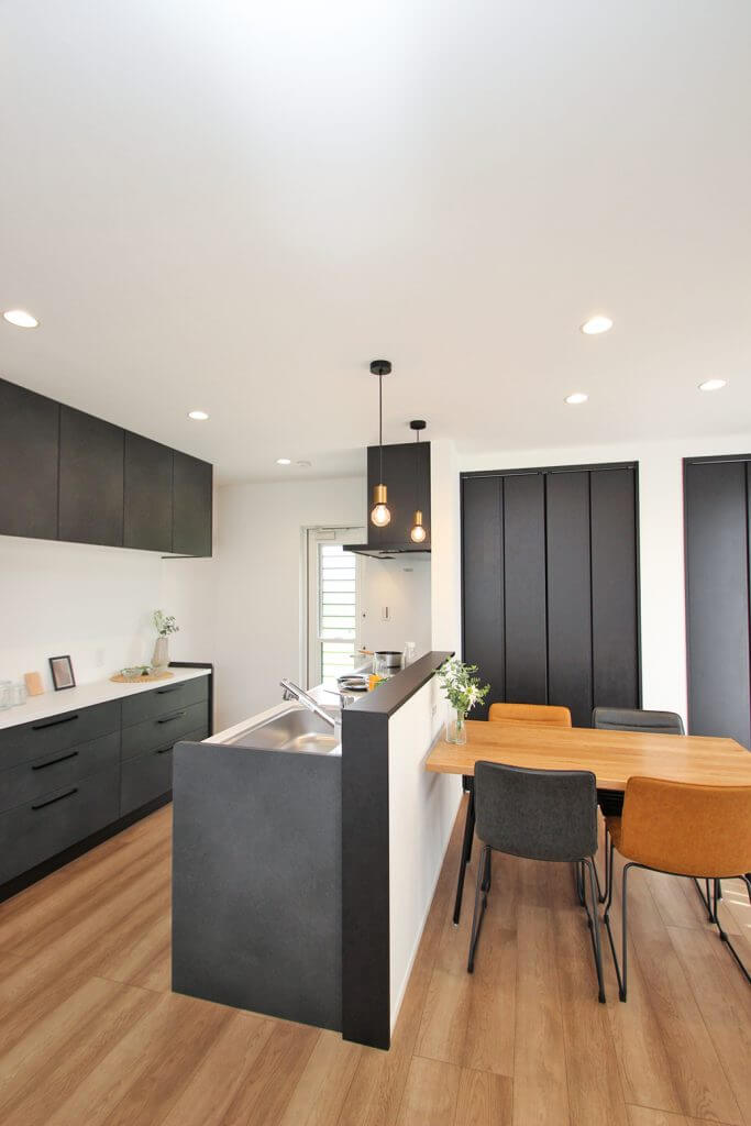 黒色の外壁×木目調のアクセントで大人モダンな家