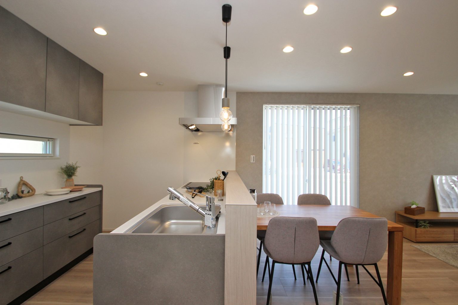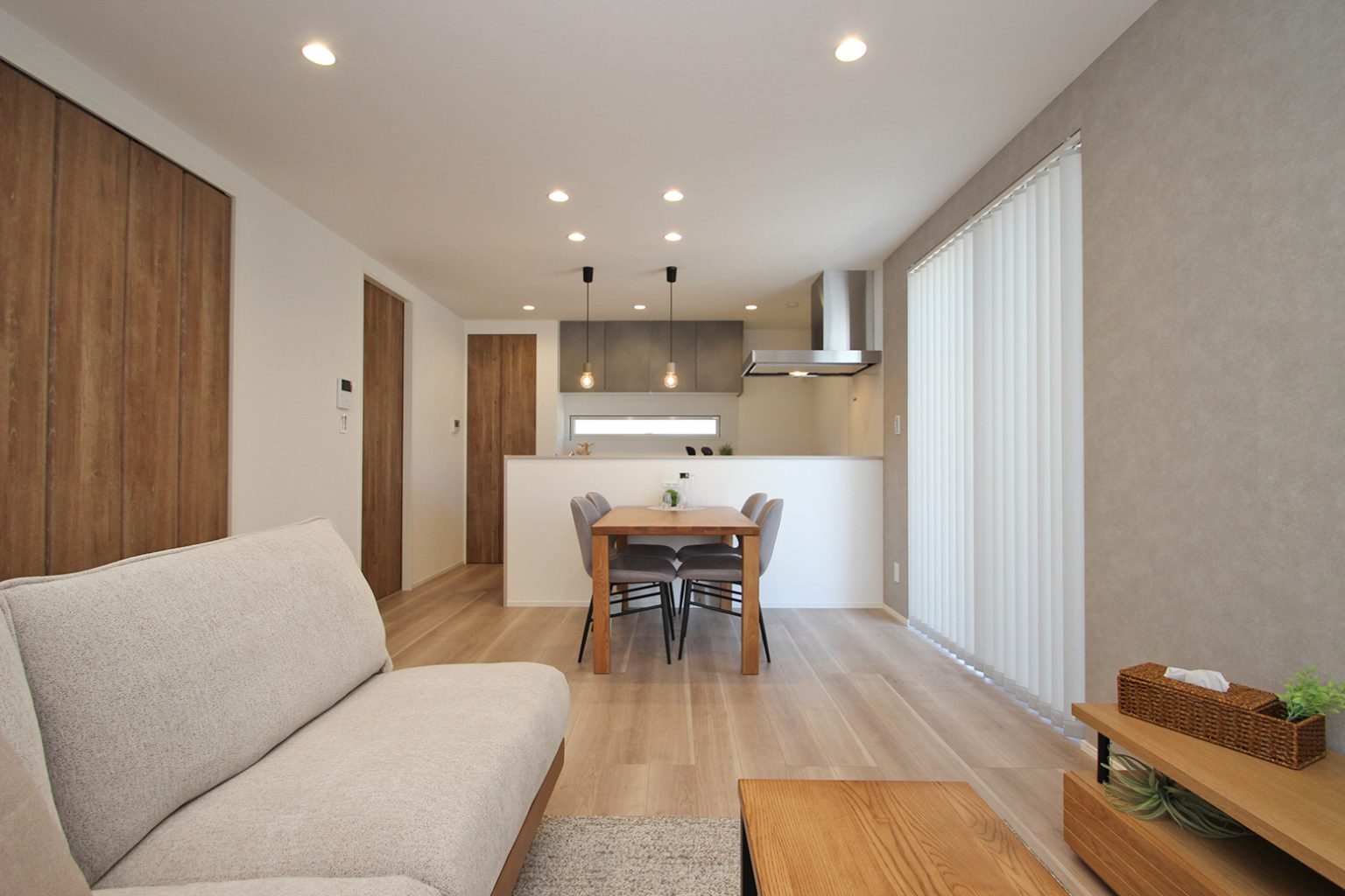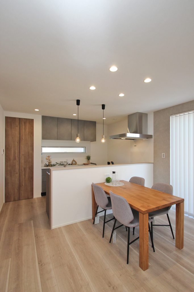 白を基調に落ち着いた木目が映えるこだわり設計の家。