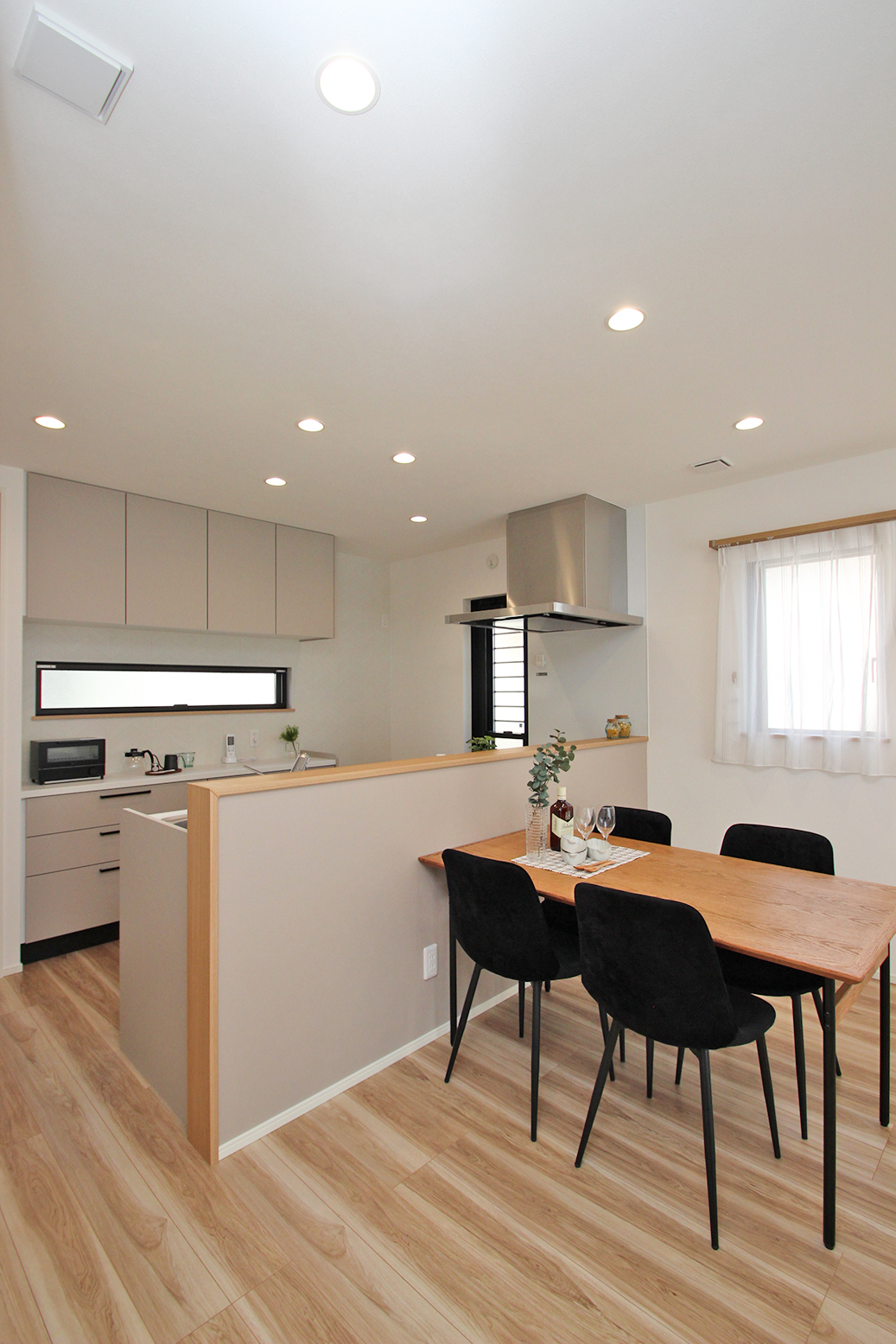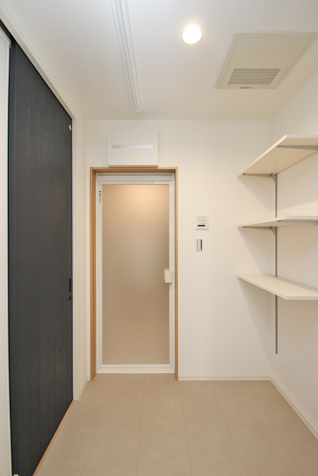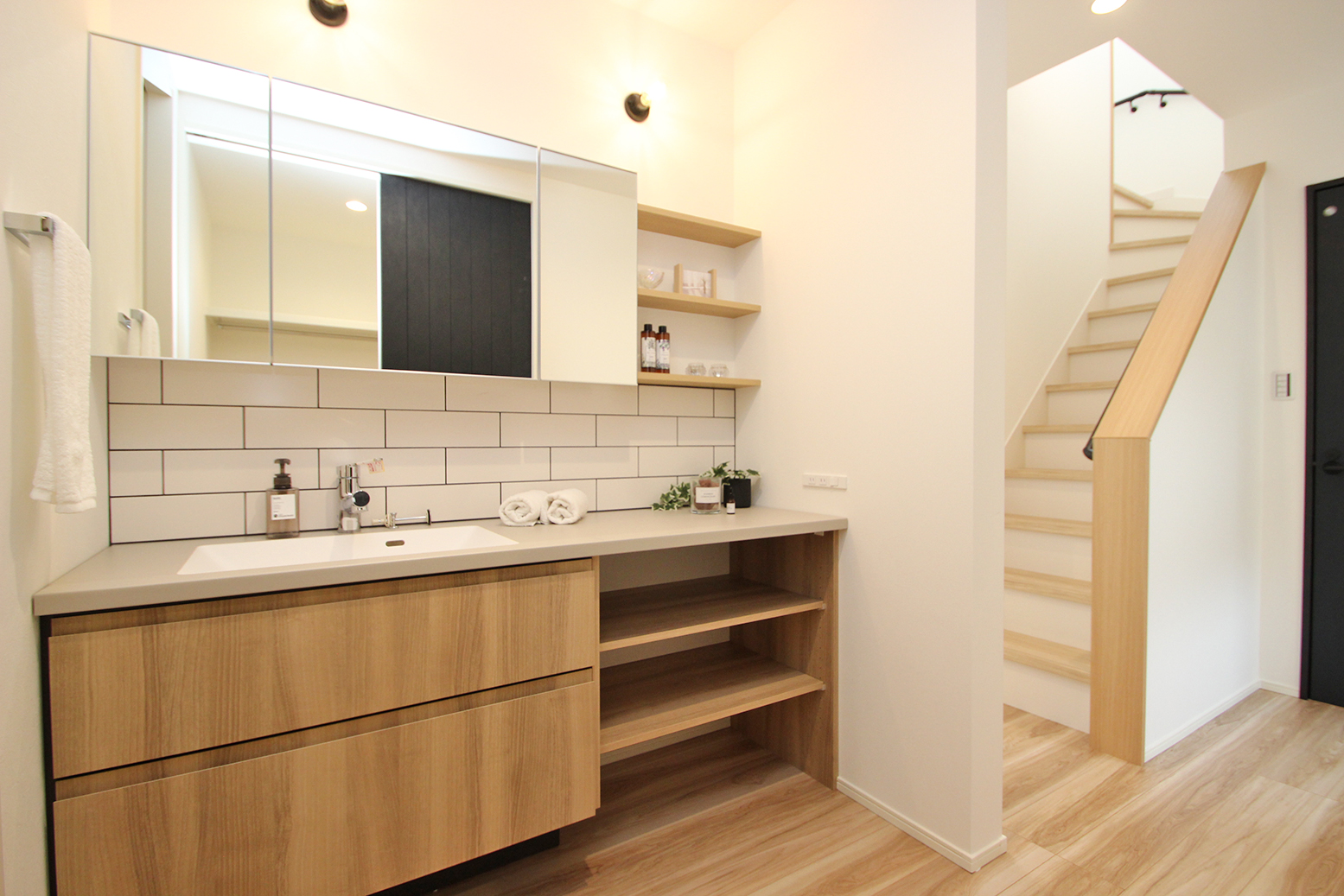 キッチン⇔脱衣室⇔洗面室とアクセス可能な回遊動線がある間取り。行き止まりがない動線は家事効率のアップに繋がる◎