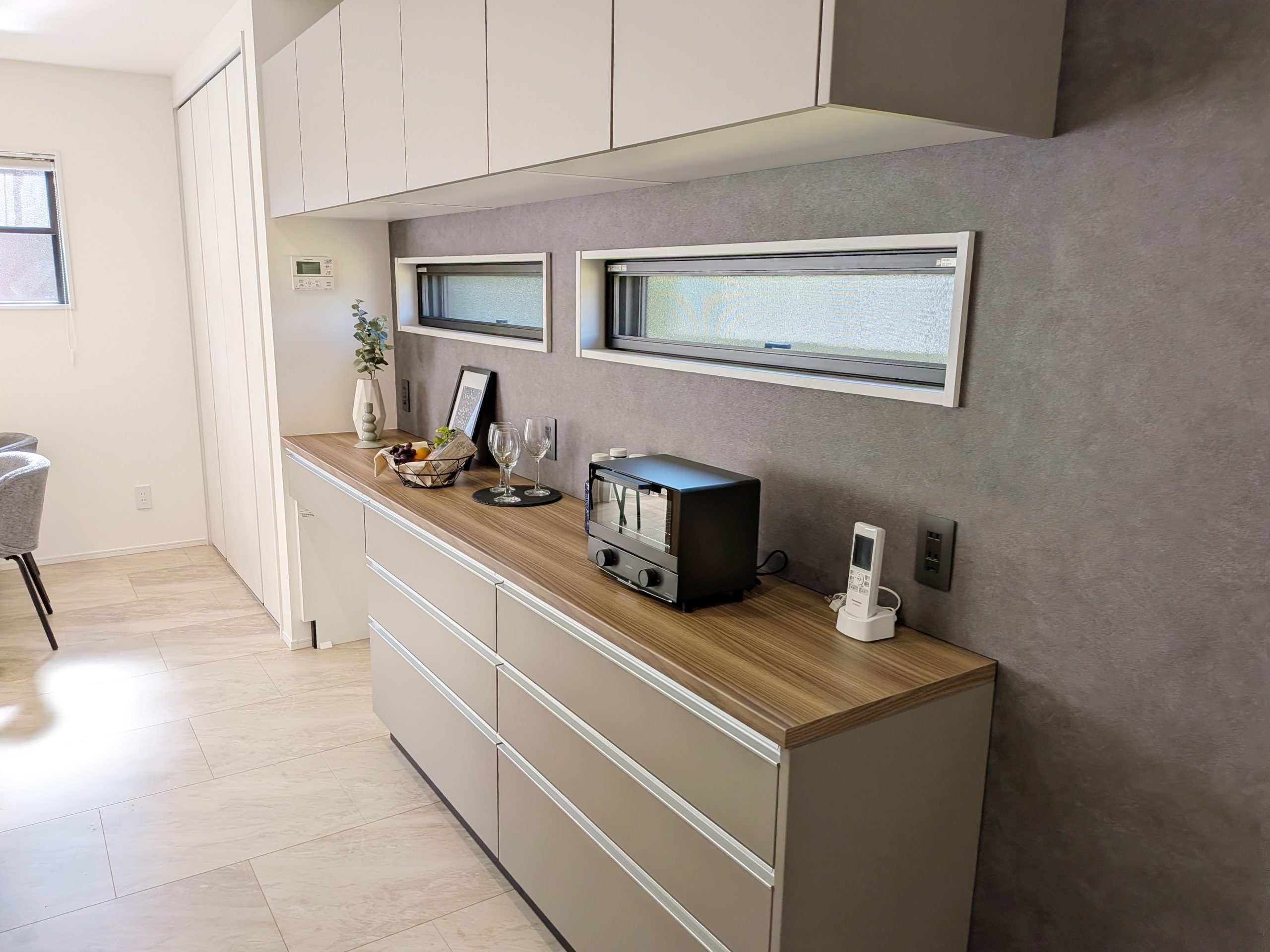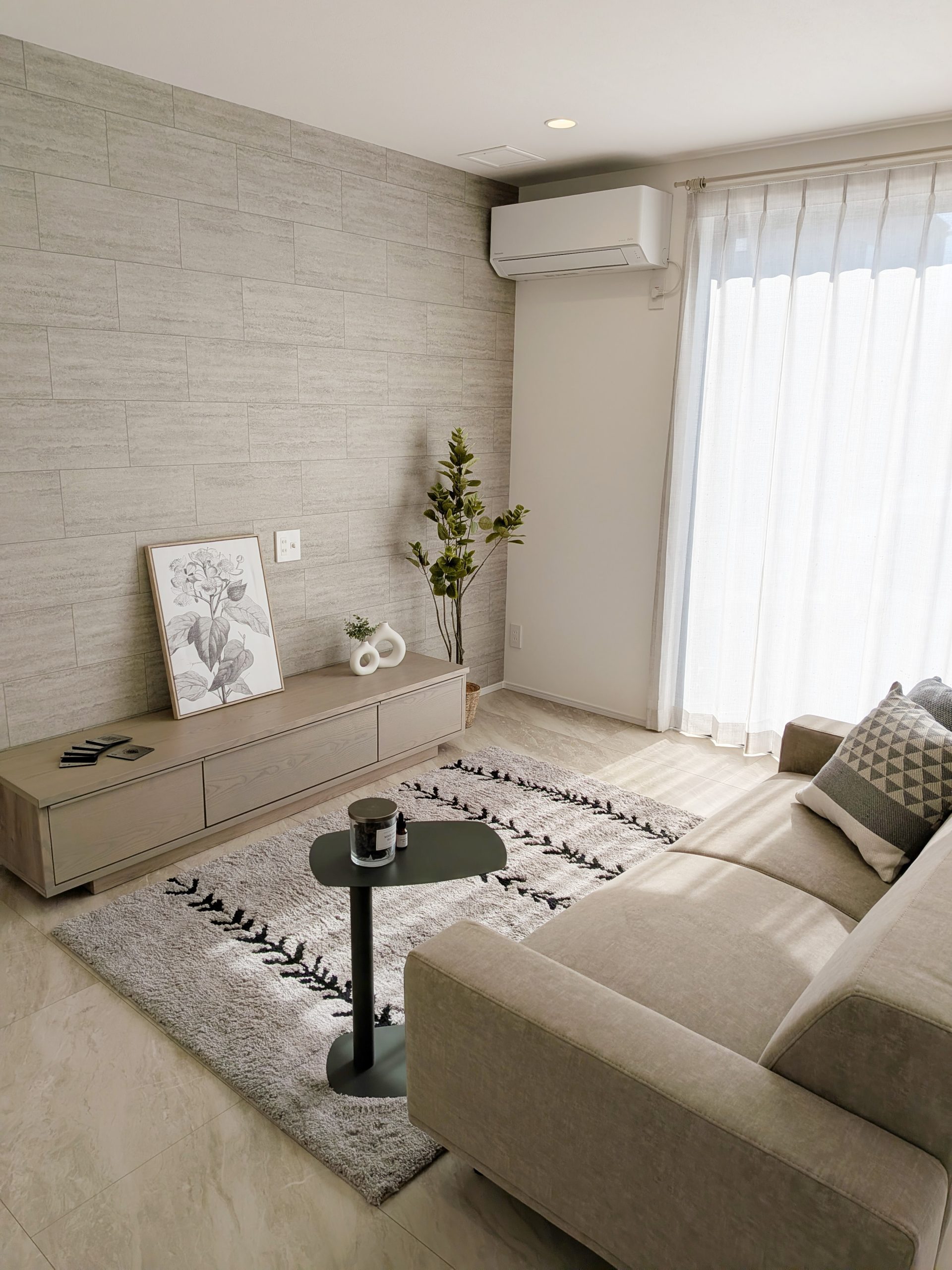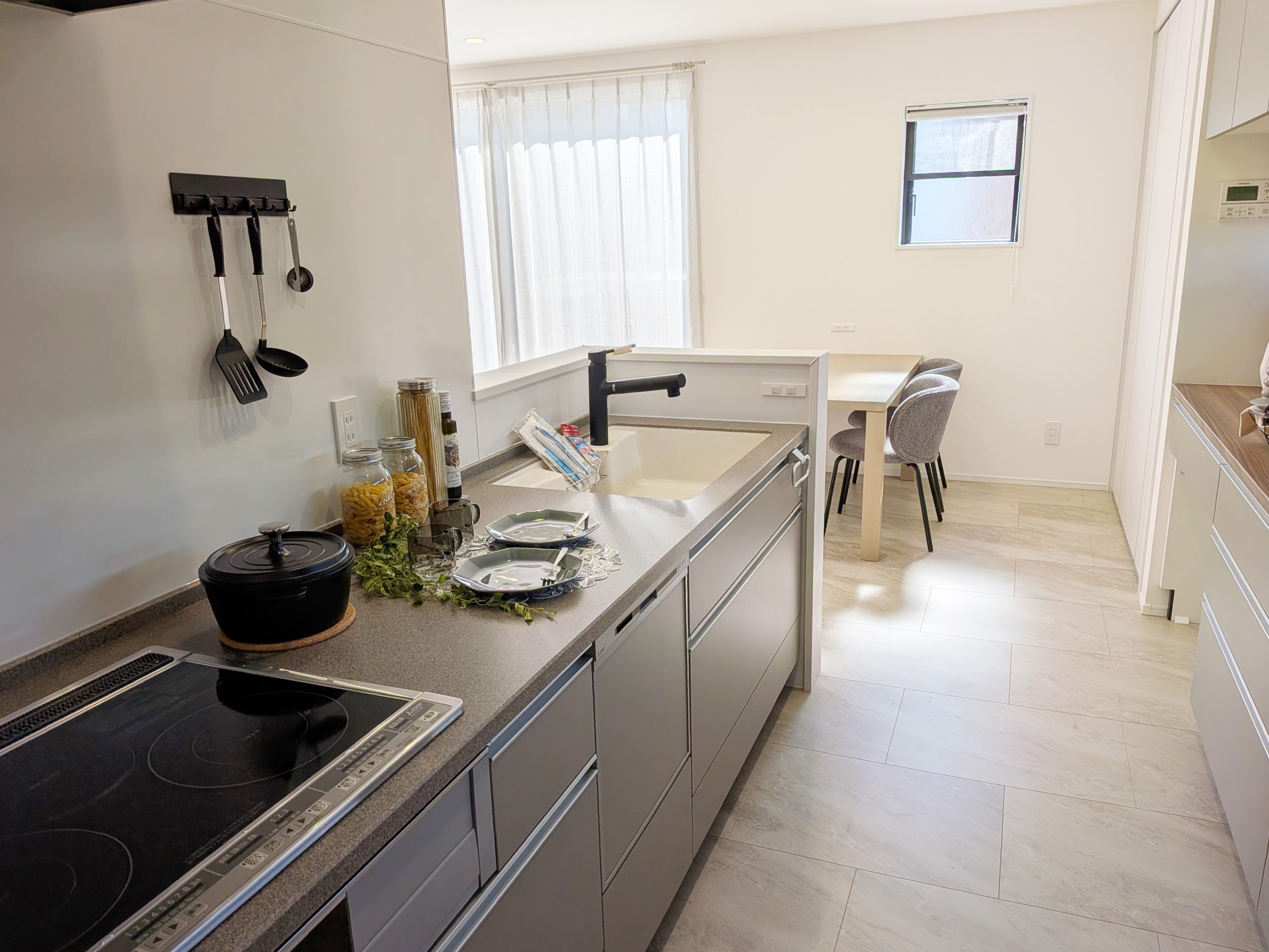 白とベージュを基調とした内装は、淡いカラーが心地いい住まい。2階には家族構成やライフステージに応じて活用できるフリールーム付き◎