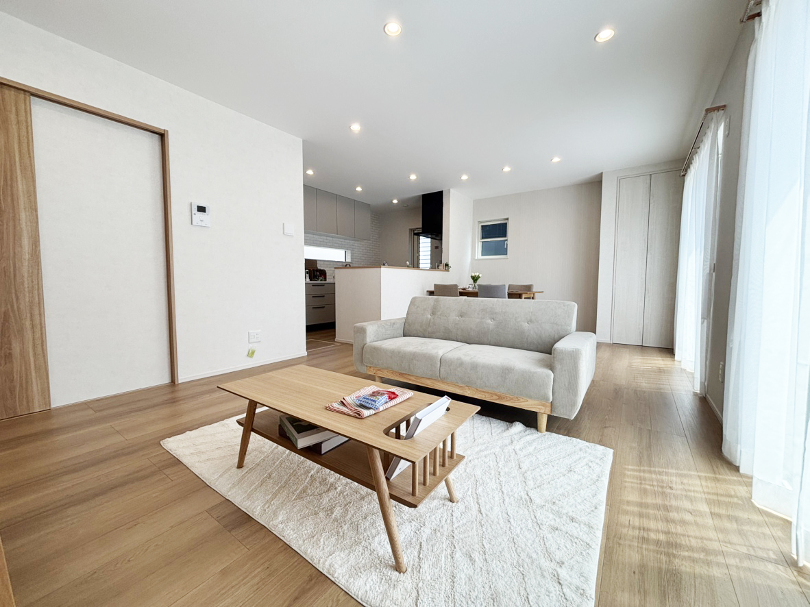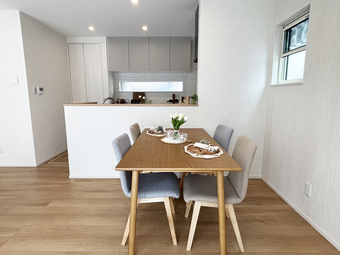 ホワイトを基調とした内装は、木目調の家具や淡いカラーのキッチンが映える優しさのある雰囲気です。